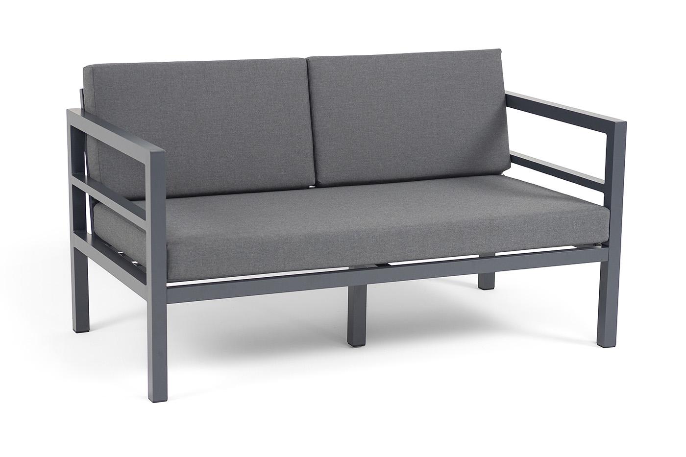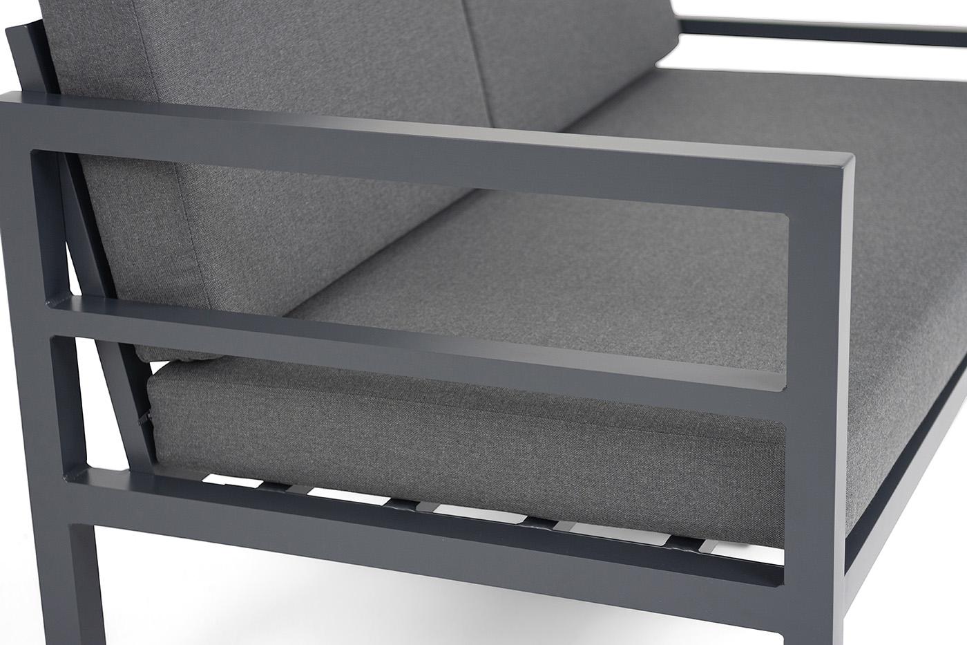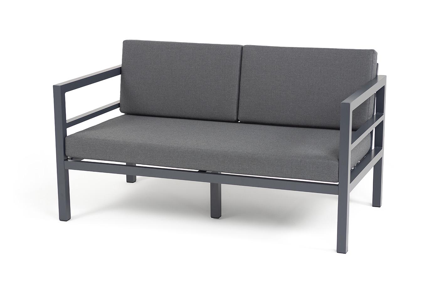 Диван 4SIS "Эстелья" диван 2-местный, каркас алюминий темно-серый (RAL7024) муар, ткань темно-серая 027 арт. EST-S-2-001 RAL7024 Mua(D-gray027)