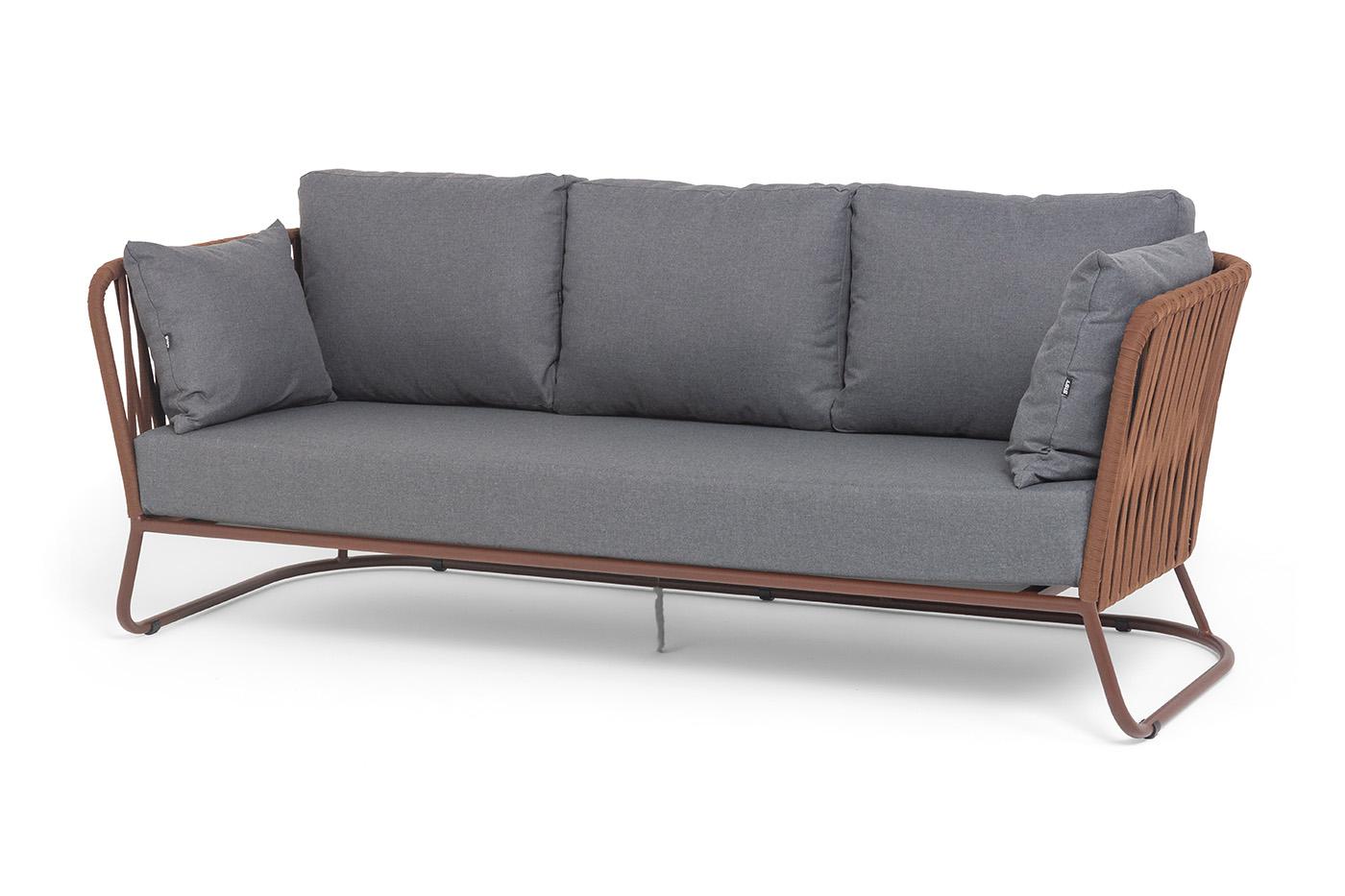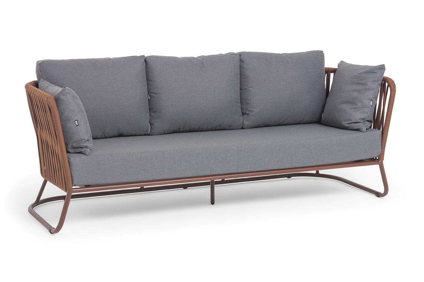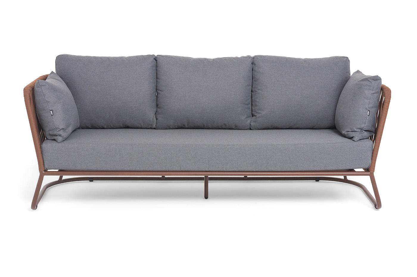 Диван 4SIS "Багамы" диван 3-местный плетеный из роупа, каркас алюминий бежево-серый (RAL7006) муар, роуп серо-коричневый 23мм, ткань светло-серая арт. BAG-S-3 RAL8016 Mua BZ23-ED31 (D-gray027)
