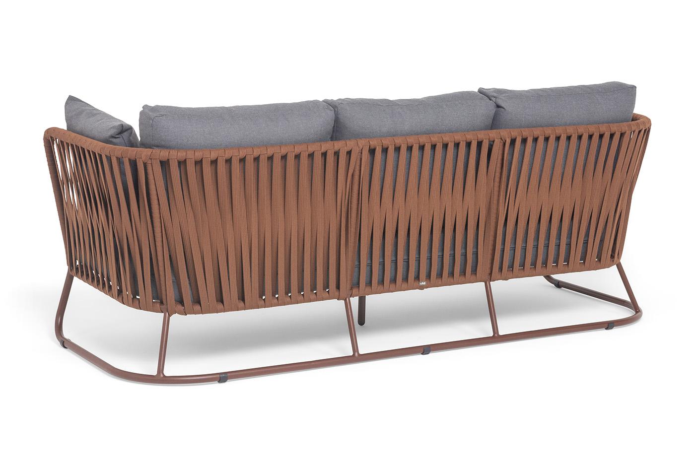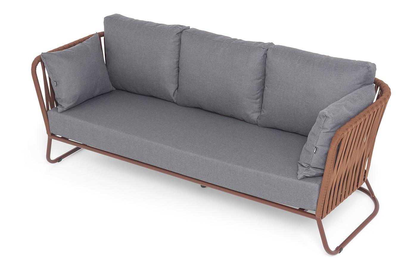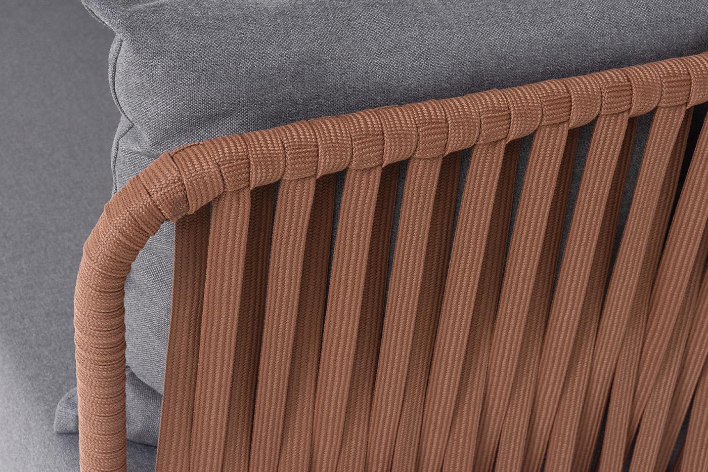 Диван 4SIS "Багамы" диван 3-местный плетеный из роупа, каркас алюминий бежево-серый (RAL7006) муар, роуп серо-коричневый 23мм, ткань светло-серая арт. BAG-S-3 RAL8016 Mua BZ23-ED31 (D-gray027)