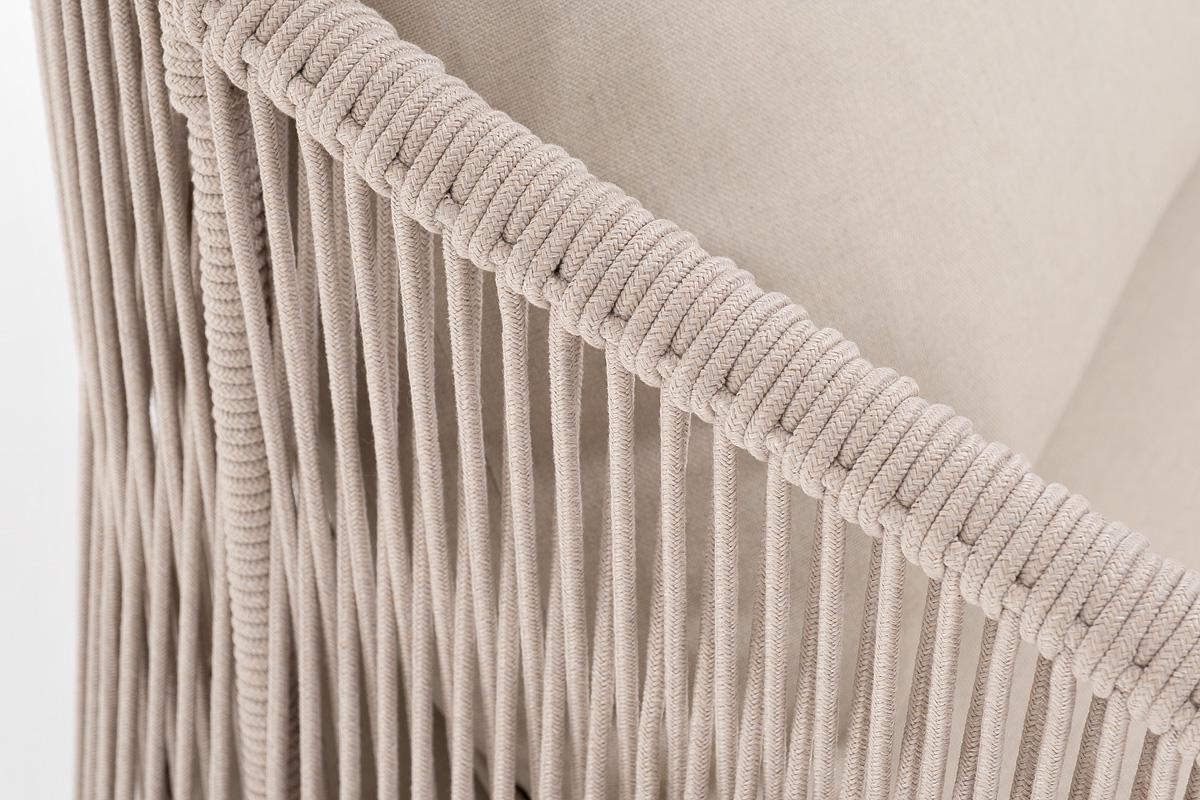 Диван 4SIS "Милан" диван 3-местный плетеный из роупа, каркас алюминий белый муар, роуп бежевый круглый, ткань бежевая 15052 арт. MIL-S-3-001 W Mua beige(beige15052)