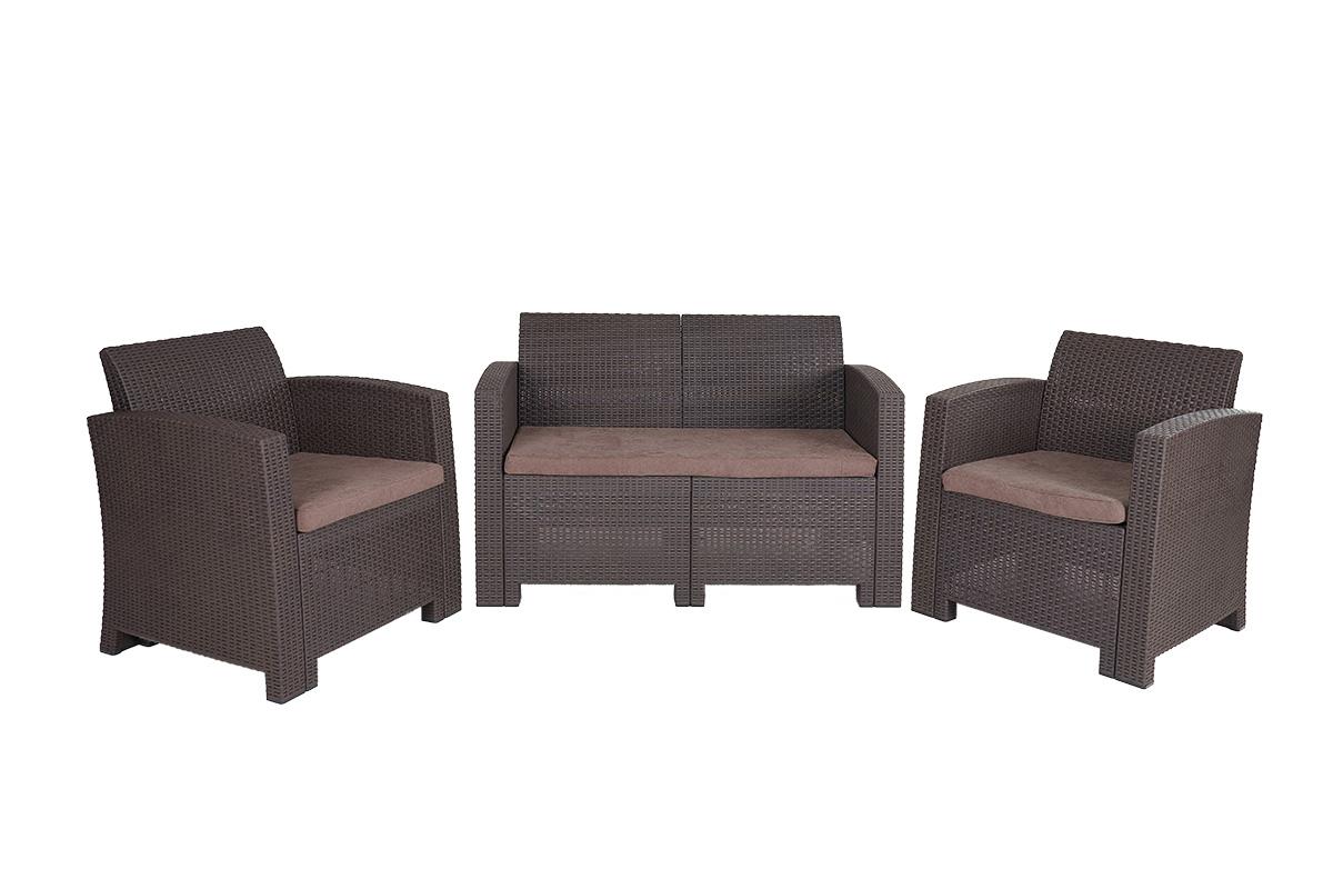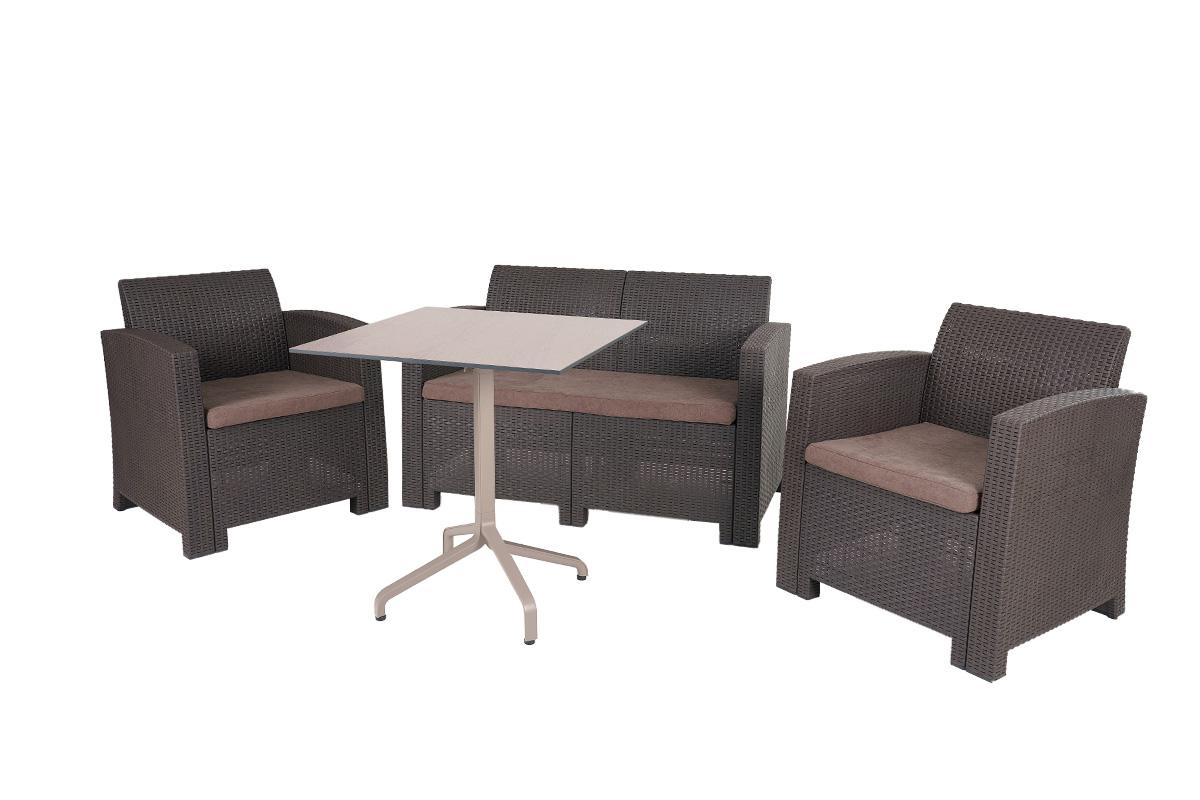 Итальянская уличная мебель для сада и уличных кафе изготовлена из штампованного пластика, на 100% имитирует искусственный ротанг.