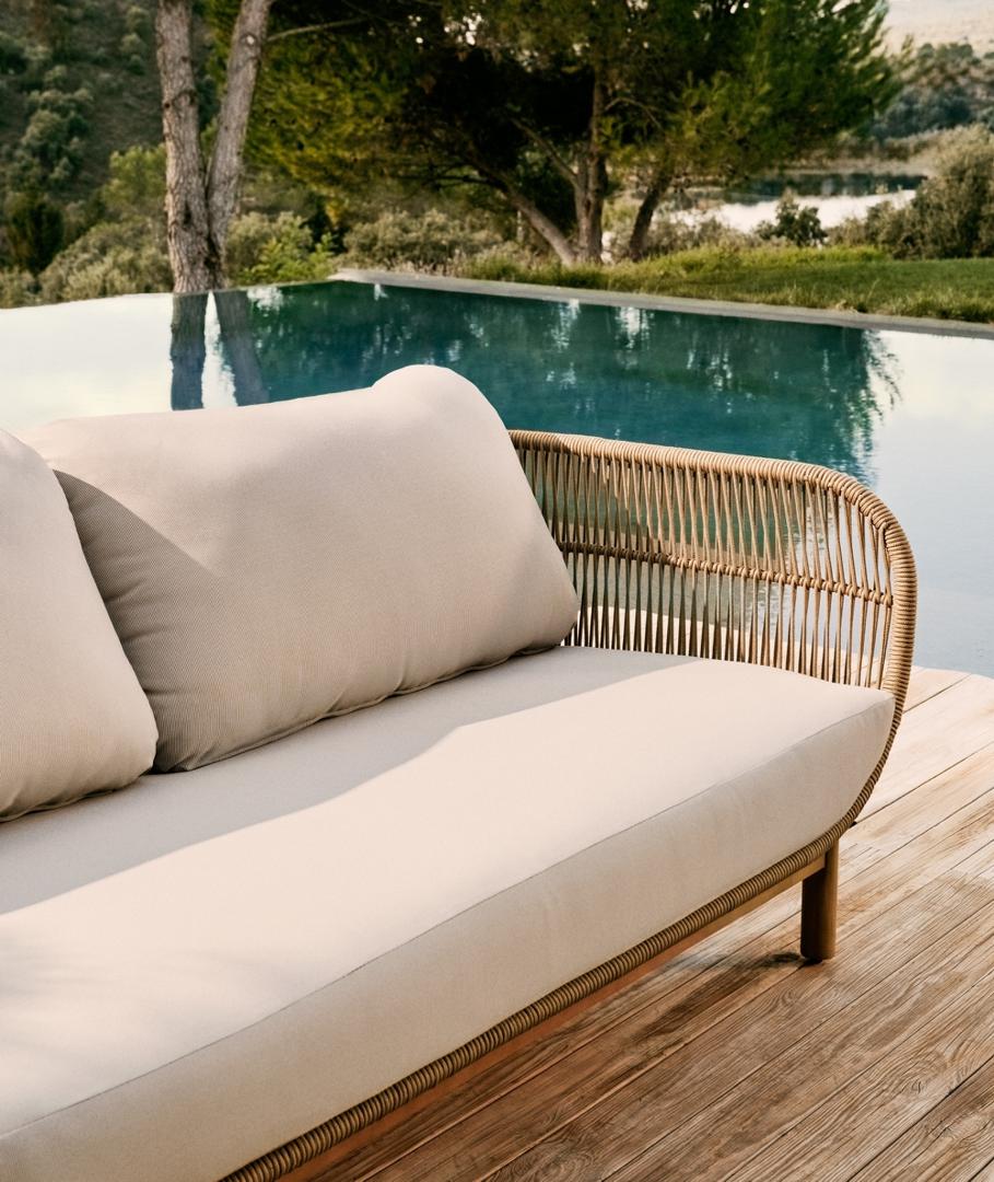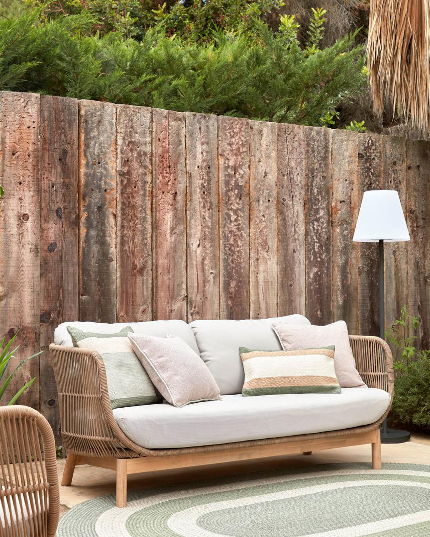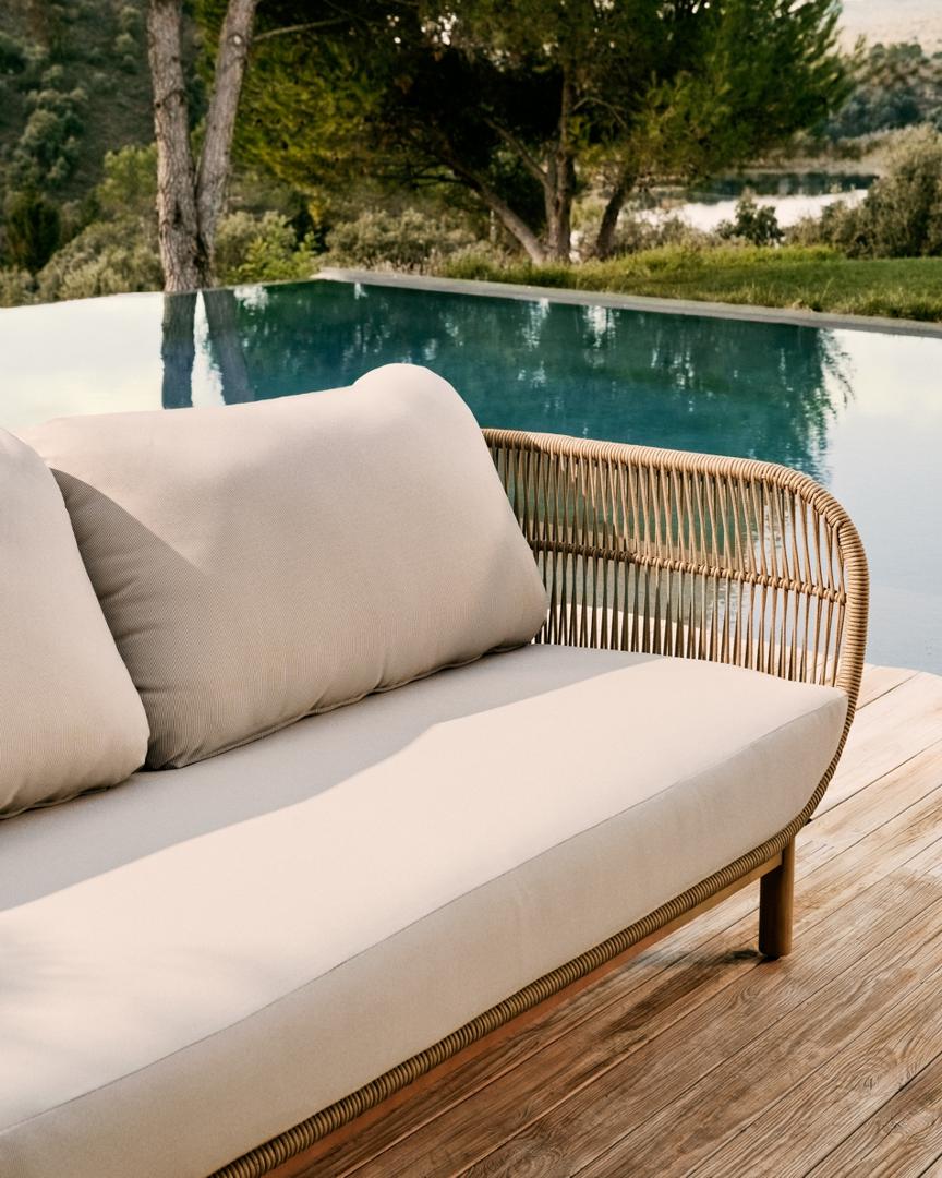 Диван La Forma (ех Julia Grup) 3-местный диван Catalina из бежевой веревки и массива акации арт. 115638