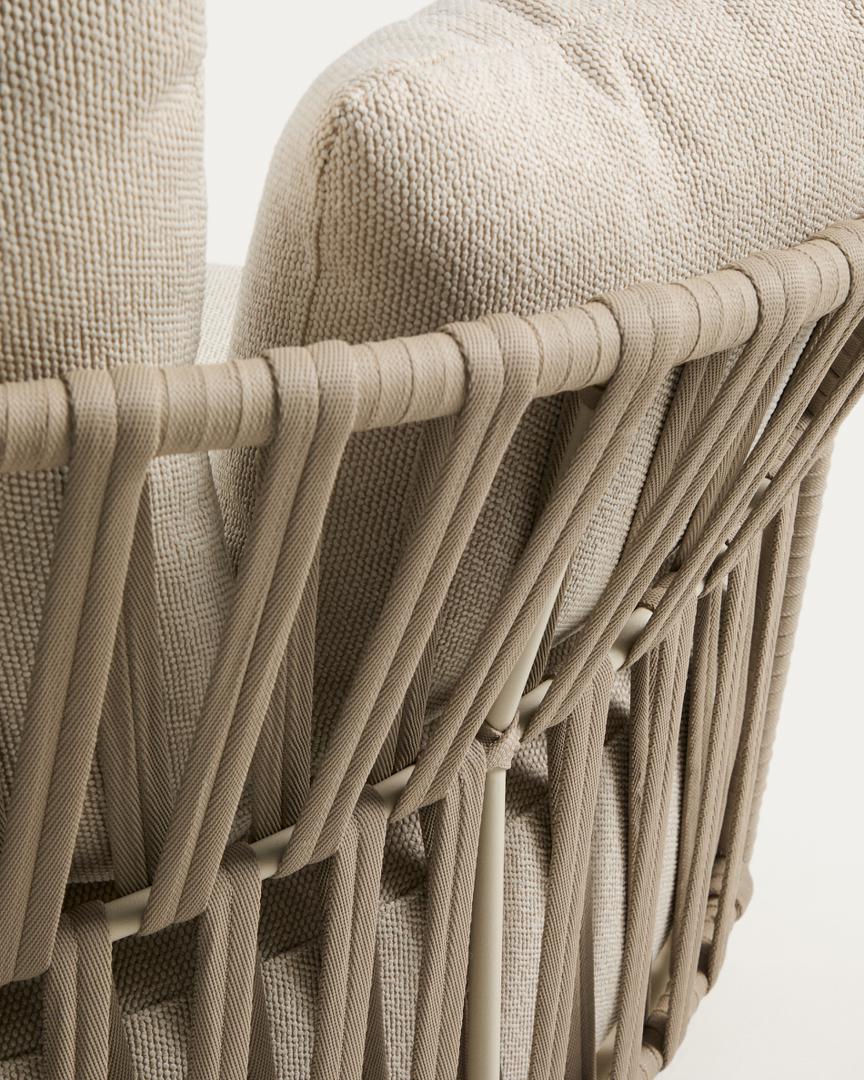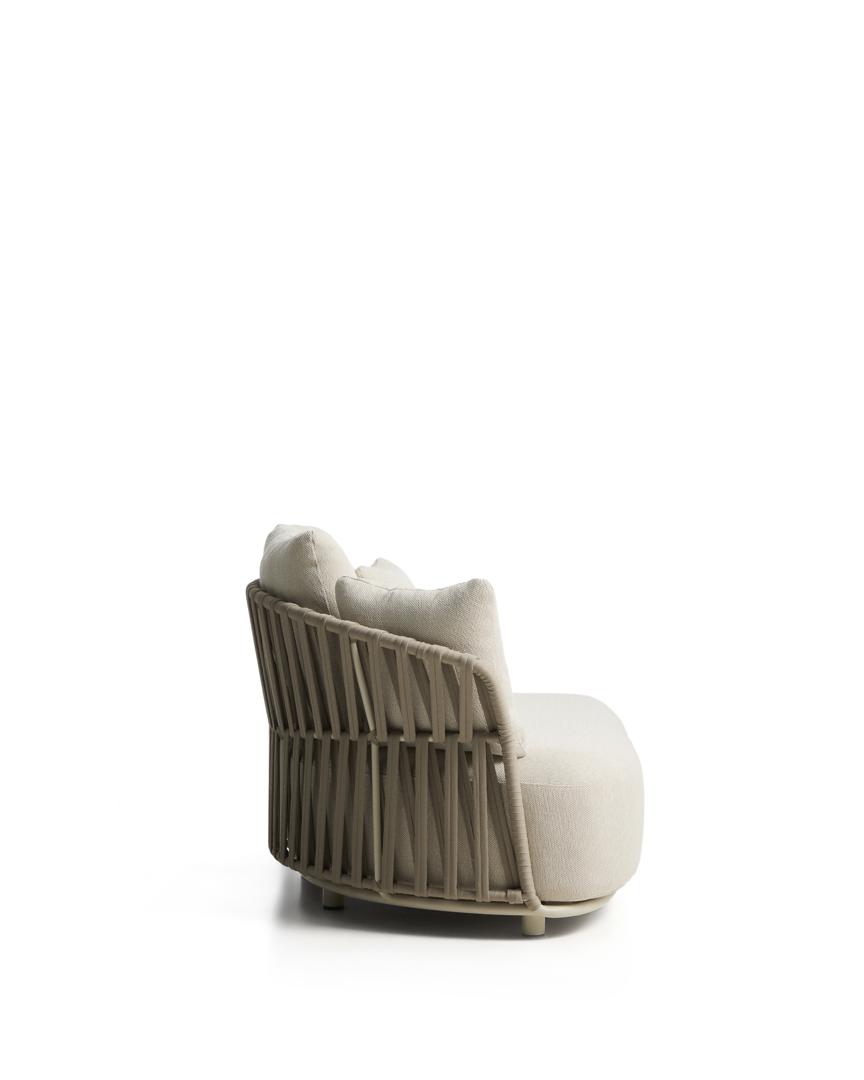 Коллекция Osani создана для того, чтобы гармонично дополнять интерьер и экстерьер, придавая им спокойствие. Алюминиевая конструкция обеспечивает легкость и устойчивость к ржавчине, коррозии и УФ-излучению, что делает ее предназначенной для длительного использования на открытом воздухе. Спинка, выполненная из плетеного вручную шнура, подчеркивает характер изделия и обеспечивает комфортную поддержку, сохраняя при этом хорошее состояние под воздействием солнечных лучей. Подушки имеют съемные чехлы для удобства ухода; мы рекомендуем хранить их в недоступном для дождливых дней месте.