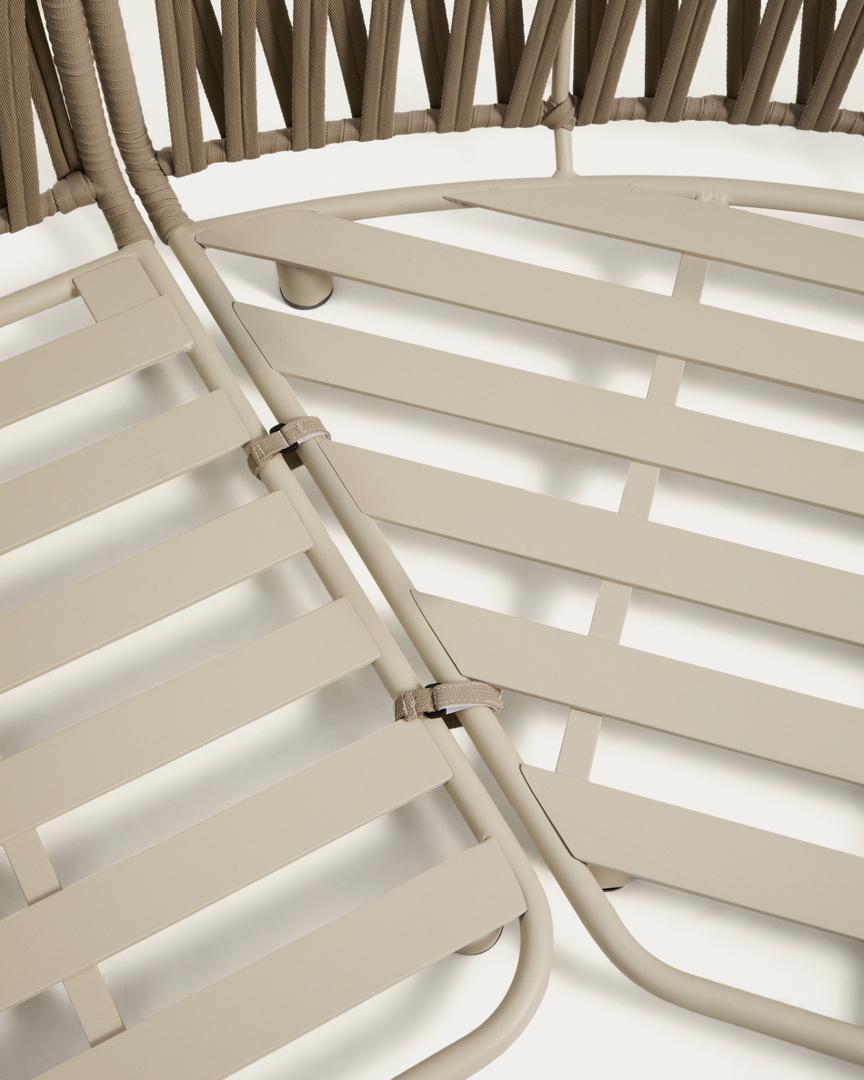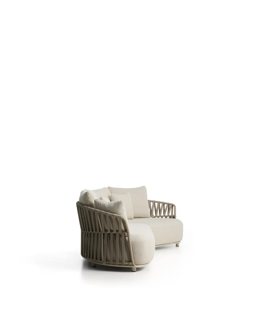 Коллекция Osani создана для того, чтобы гармонично дополнять интерьер и экстерьер, придавая им спокойствие. Алюминиевая конструкция обеспечивает легкость и устойчивость к ржавчине, коррозии и УФ-излучению, что делает ее предназначенной для длительного использования на открытом воздухе. Спинка, выполненная из плетеного вручную шнура, подчеркивает характер изделия и обеспечивает комфортную поддержку, сохраняя при этом хорошее состояние под воздействием солнечных лучей. Подушки имеют съемные чехлы для удобства ухода; мы рекомендуем хранить их в недоступном для дождливых дней месте.