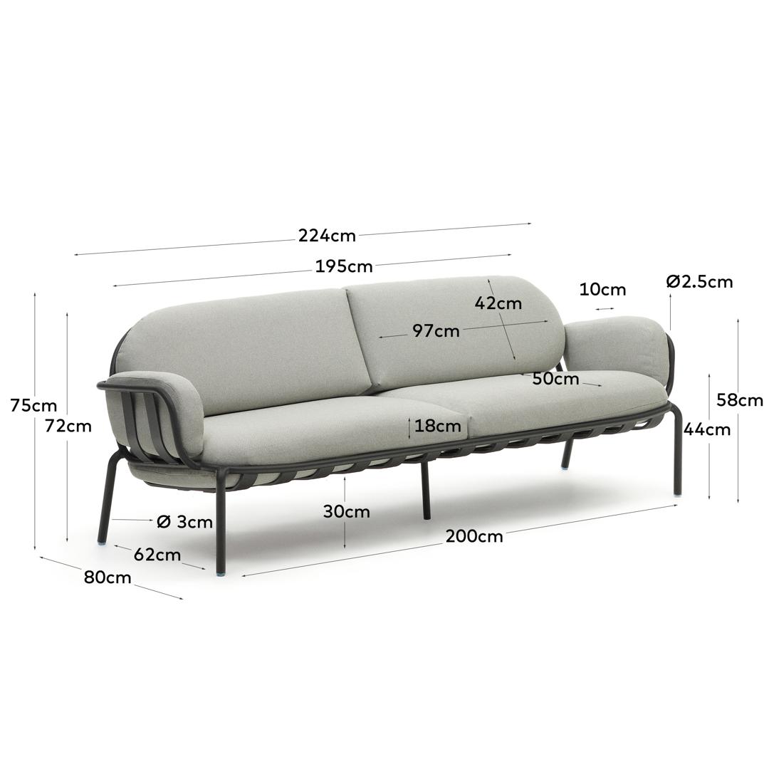 Диван La Forma (ех Julia Grup) Joncols 3-местный алюминиевый диван серого цвета 225 см арт. 157385