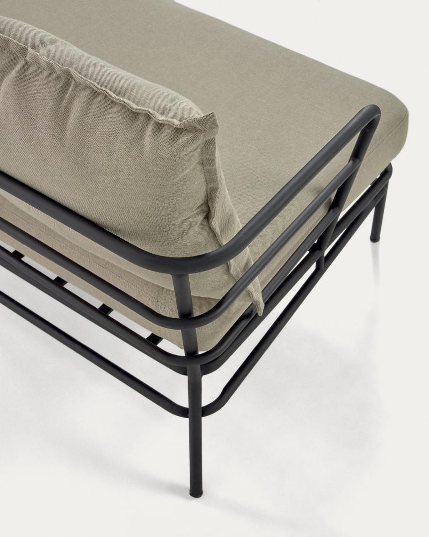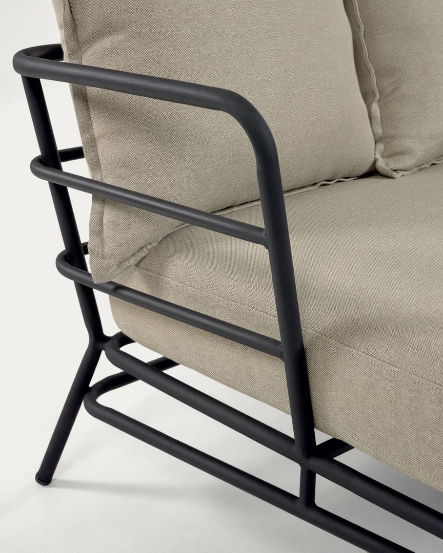 Диван Mareluz от фабрики La Forma (ex Julia Grup) – дизайн, который объединяет комфорт и динамику. Диван Mareluz создаст в вашем пространстве ощущение широты и яркости, приглашая расслабиться на открытом воздухе среди объемных подушек. Он абсолютно практичен и долговечен. Ведь здесь металл и прочный полиэстер, который можно стирать в машинке. Наслаждайтесь своим временем с комфортом вместе с Mareluz! Диван имеет сварную металлическую конструкцию, созданную из трубок диаметром 2,5 см. Она покрыта черной матовой краской, которая защищает от коррозии. Для стойкости к высоким нагрузкам, конструкция дополнительно усилена перекладинами на спинке, подлокотниках, под основанием. Максимальное давление – 300 кг. Общая вместимость – 3 человека. Для защиты напольного покрытия от повреждений, на ножках установлены пластиковые наконечники. К дивану прилагаются подушки – три вдоль спинки и одна высотой 10 см в качестве сиденья. Они серого цвета, набиты синтетической пеной. Чехлы съемные, из прочного полиэстера. Размеры: ширина – 197 см, высота спинки – 60 см, глубина – 75 см, глубина сиденья – 70 см. Вес изделия – 29,9 кг. Поставка осуществляется в собранном виде. В коллекции Mareluz также представлено кресло в аналогичном дизайне.