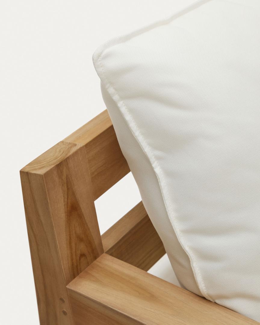 Диван Forcanera от фабрики La Forma (ex Julia Grup) – достойный стать частью любого уличного дизайна. Диван Forcanera идеально подойдет для эксплуатации на уличной территории. Его деревянный каркас и влагостойкая обивка – особенности, благодаря которым вы не будете думать о потере внешнего вида изделия после намокания или постоянного воздействия солнечных лучей. Современная геометрия формы присобится под любую вашу обстановку. А уникальный вид древесины внесет свою ноту уникальности. Каркас дивана полностью сделан из массива тика, который защищен от негативного атмосферного воздействия прозрачным лаком. Широкие ножки дополнены накладками, обеспечивают устойчивость на неровной поверхности и надежность во время эксплуатации. Максимальная весовая нагрузка – 260 кг. Вместимость – 3 человека. Подушки наполнены пенополистиролом – идеально подходящим наполнителем для уличных условий эксплуатации. Чехлы на подушках сшиты из прочной синтетической ткани с влагостойкой пропиткой. Их можно стирать в машинке на холодном режиме. Размеры: ширина – 211 см, высота – 69 см, глубина – 90 см. Вес изделия – 56,5 кг. В коллекцию Forcanera также включены шезлонг и кресло. Сборка не требуется. В зимний период кресло необходимо хранить в сухом закрытом помещении.