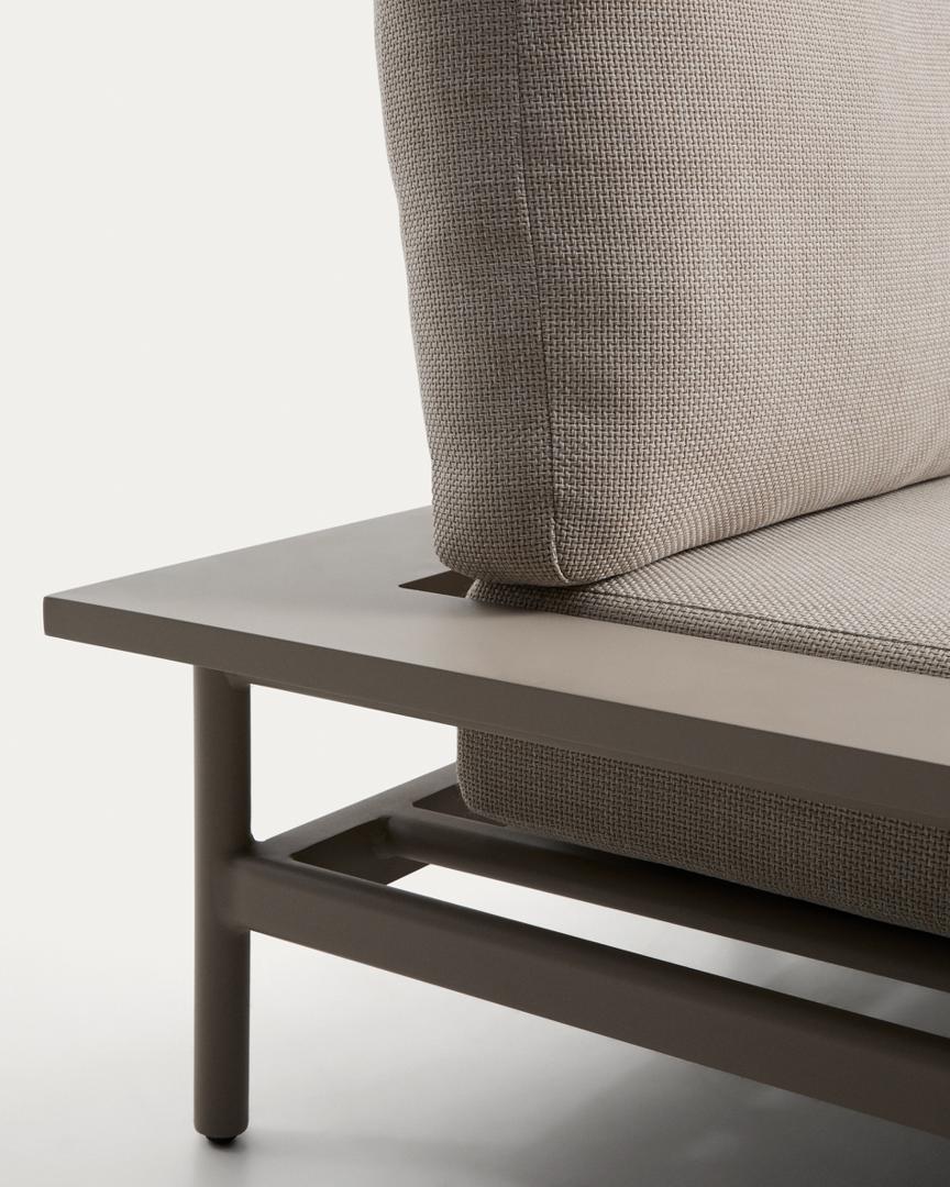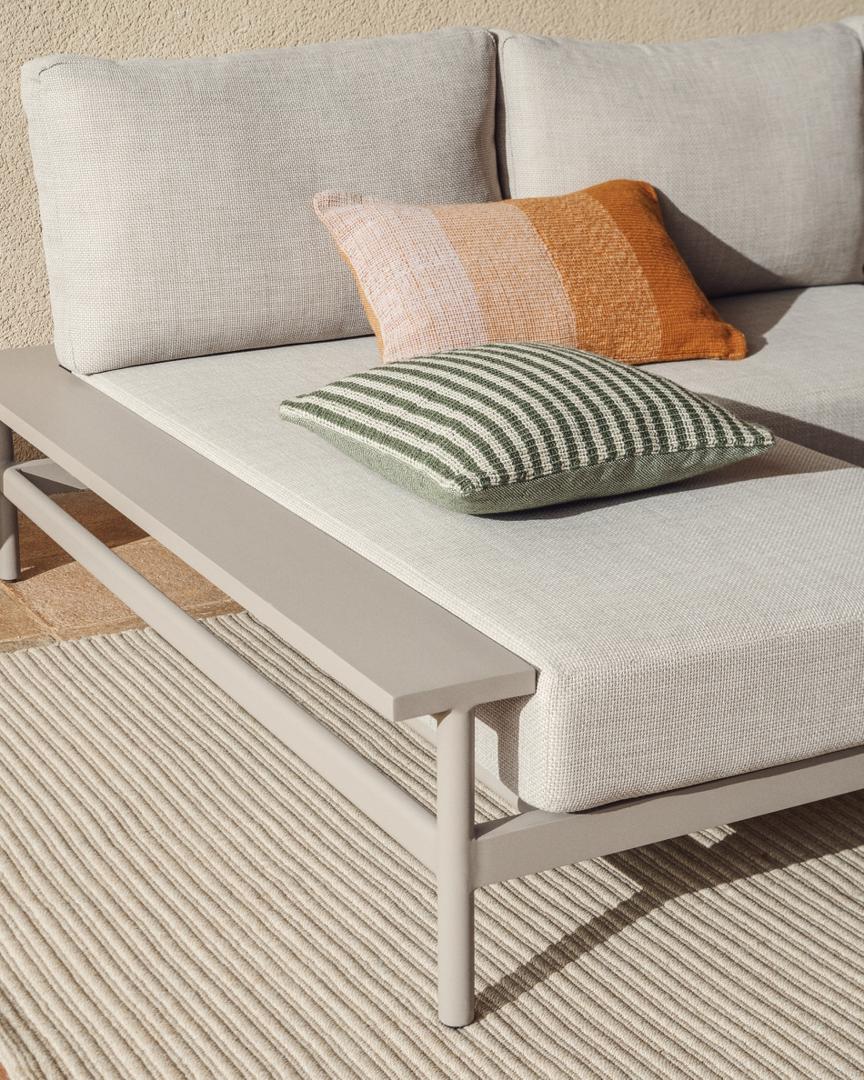 Диван Vathi изготовлен из алюминия — материала, сочетающего в себе легкость и прочность. Его конструкция позволяет максимально эффективно использовать пространство и создать просторную и комфортную зону отдыха как в помещении, так и на открытом воздухе. Алюминий гарантирует устойчивость к ржавчине, коррозии и ультрафиолетовому излучению, что делает его идеальным для использования на открытом воздухе и позволяет дольше сохранять внешний вид. В комплект входят съемные подушки, которые легко чистить и за которыми легко ухаживать. Для сохранения их свойств мы рекомендуем хранить их в дождливую погоду.