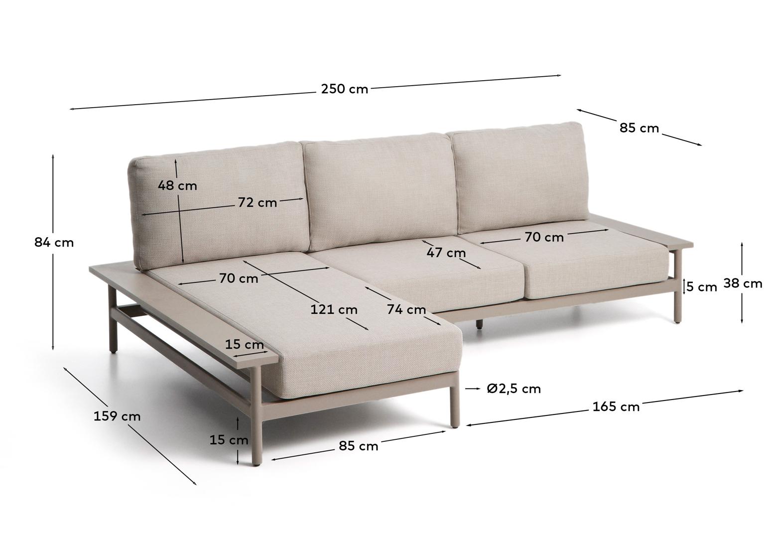 Диван La Forma (ех Julia Grup) Трехместный уличный диван Vathi с левым шезлонгом цвета таупе, 250 x 159 см арт. 482029