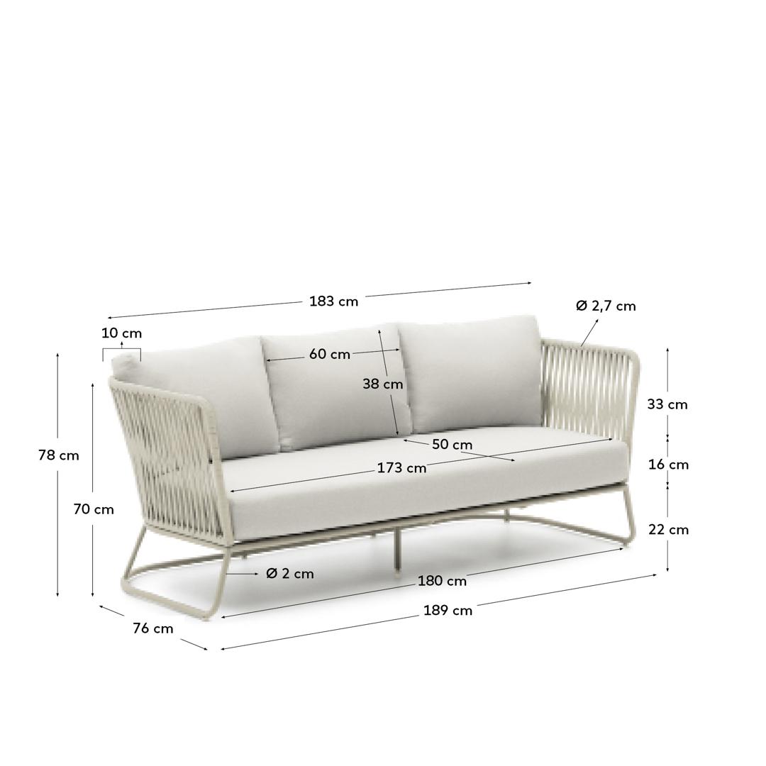 Диван La Forma (ех Julia Grup) Уличный 3-местный диван Saconca из шнура и серой оцинкованной стали 189 см арт. 254520