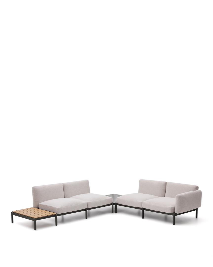 Sorells — это гораздо больше, чем просто модульный диван, это ключевой элемент для преобразования вашего пространства на открытом воздухе с аутентичным стилем и комфортом. Разработанный эксклюзивно Made Studio для Kave Home, Sorells сочетает в себе универсальность модульной конструкции с прочностью высококачественных материалов. Его алюминиевая структура, которая легкая и устойчива к ржавчине, коррозии и ультрафиолетовому излучению, обеспечивает исключительную долговечность на открытом воздухе. К этому добавляется бежевая обивка, призванная добавить изысканности и тепла любому.