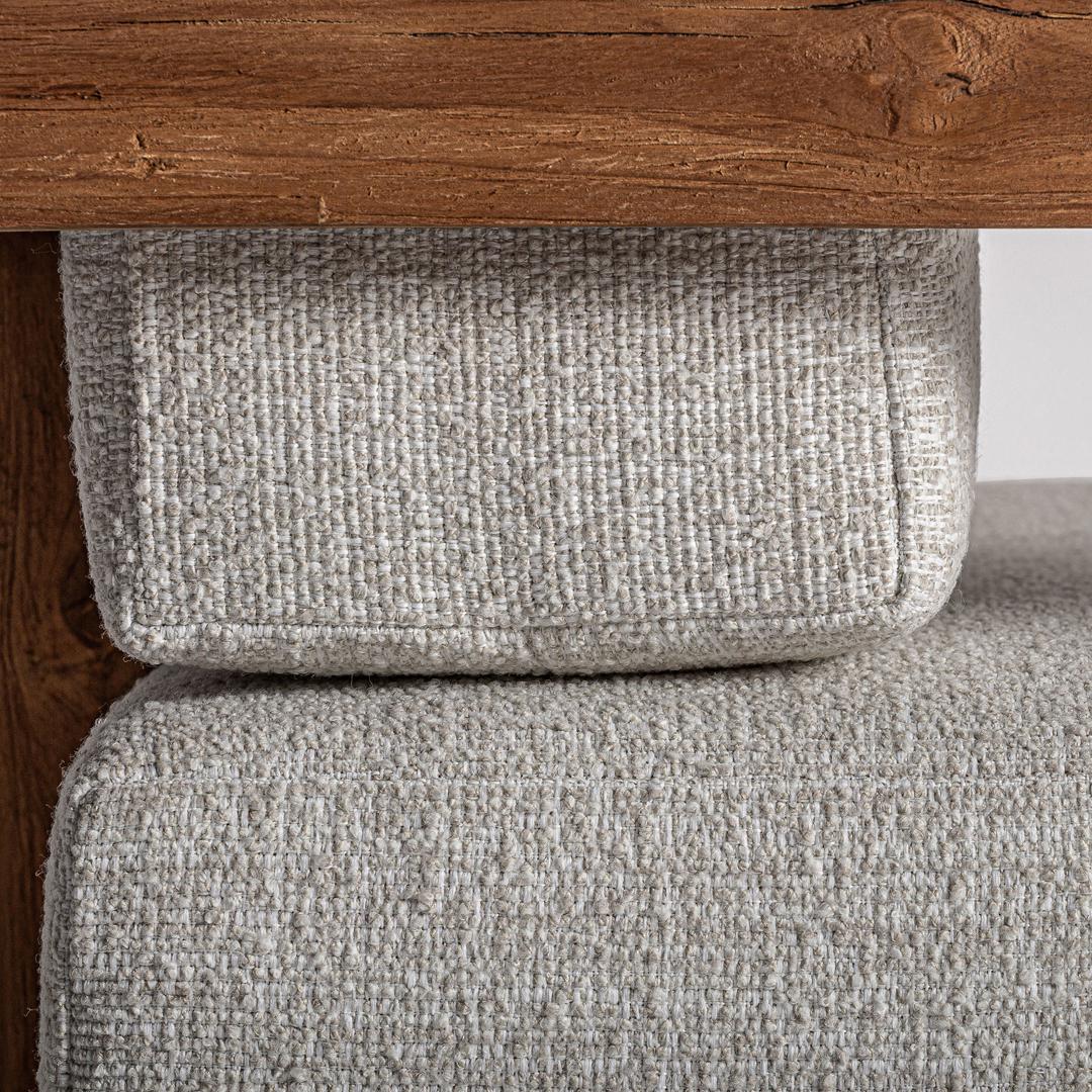 Диван Testa сочетает в себе переработанное тиковое дерево с натуральной отделкой и белой обивкой из переработанного полипропилена. Его чистый и тёплый дизайн идеально подходит для помещений и открытых пространств, где царит спокойствие. Диван разбирается, а чехлы можно снять.