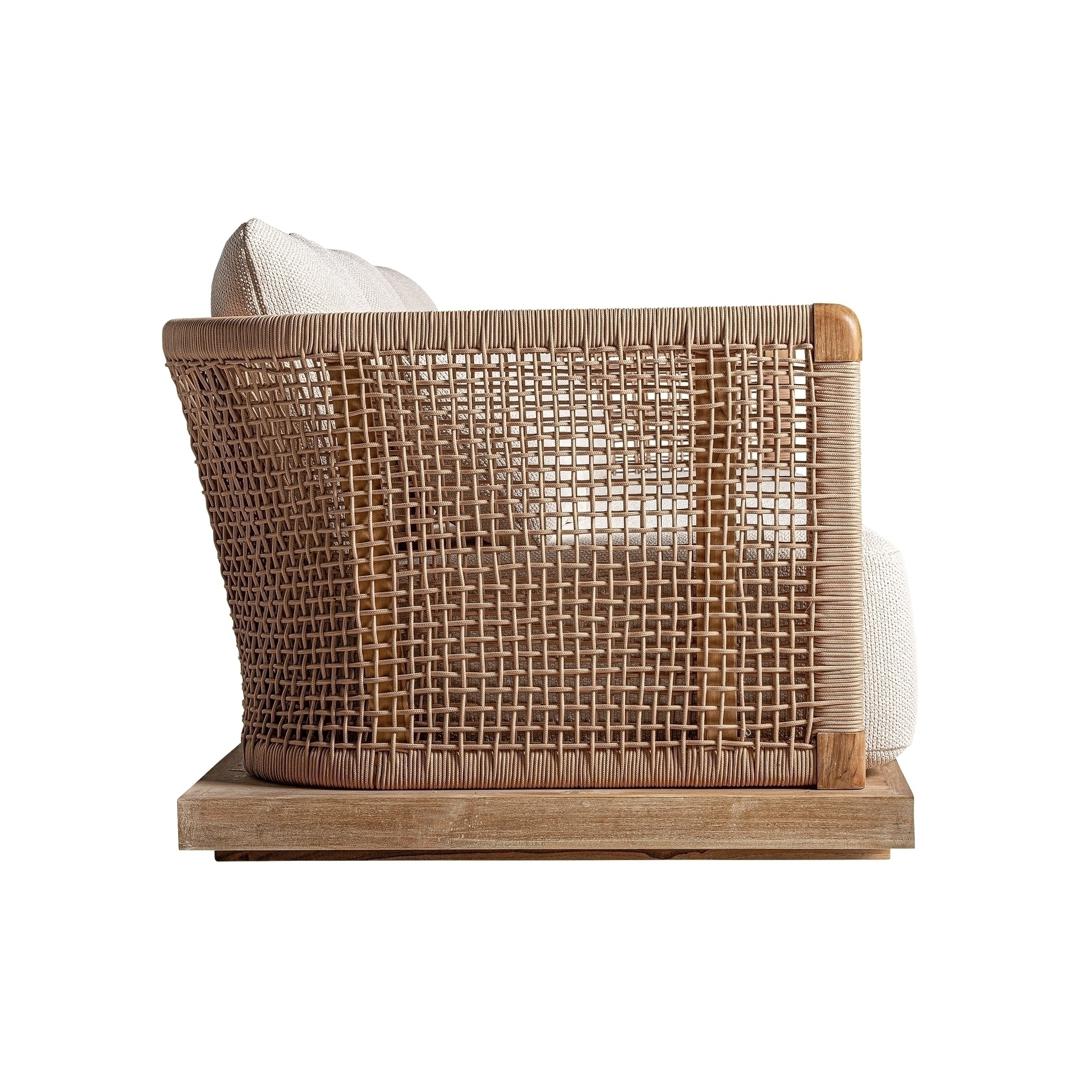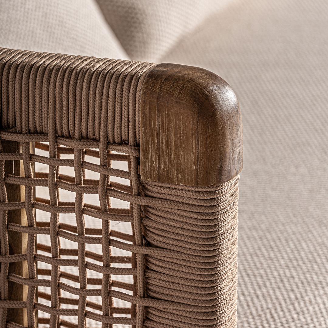 Диван Trena, коричнево-бежевый, стиль бохо. Изготовлен из переработанного тикового дерева в сочетании с переработанным полипропиленом и пеной. Изделие съемное, чехол съемный.