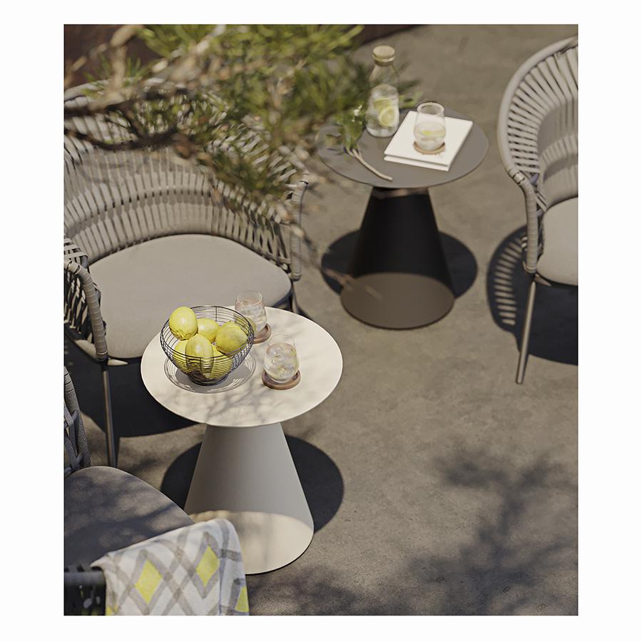 Кофейный столик Marius – идеальное решение для тех, кто любит функциональную и минималистичную мебель. Сочетание надежной конструкции и лаконичного дизайна делает эту модель отличным вариантом для обустройства современных пространств с различным оформлением. Столик можно использовать в помещении и на улице. Особенности и преимущества: - Покрытие голландской фирмы AkzoNobel, лидера в производстве покрытий для металлических изделий, обеспечивает мебели высокую износостойкость и возможность использования в уличных условиях. - Круговая полная сварка по всей поверхности соприкосновения шва гарантирует конструкции прочность, надежность и долговечность. - Специально подобранная толщина алюминия делает столик легким для перемещения и в то же время достаточно тяжелым, чтобы его не перевернуло ветром. - Отсутствие острых углов обеспечивает удобную и безопасную эксплуатацию. - Диаметр 50 см и высота 55 см дают возможность размещать этот предмет мебели в любом удобном месте, не загромождая пространство. - Алюминиевая столешница не боится царапин и повреждений, легко очищается от грязи и пятен. - Столик выдерживает нагрузку до 25 кг. - Гарантия на мебель – 12 месяцев. Материал: алюминий. Размеры: 50х50х55 см. Вес: 3,6 кг. Цвет: бежевый. Пыль и загрязнения можно удалять с поверхностей при помощи мягкого влажного материала. После очищения стол рекомендуется протереть сухой тканью.