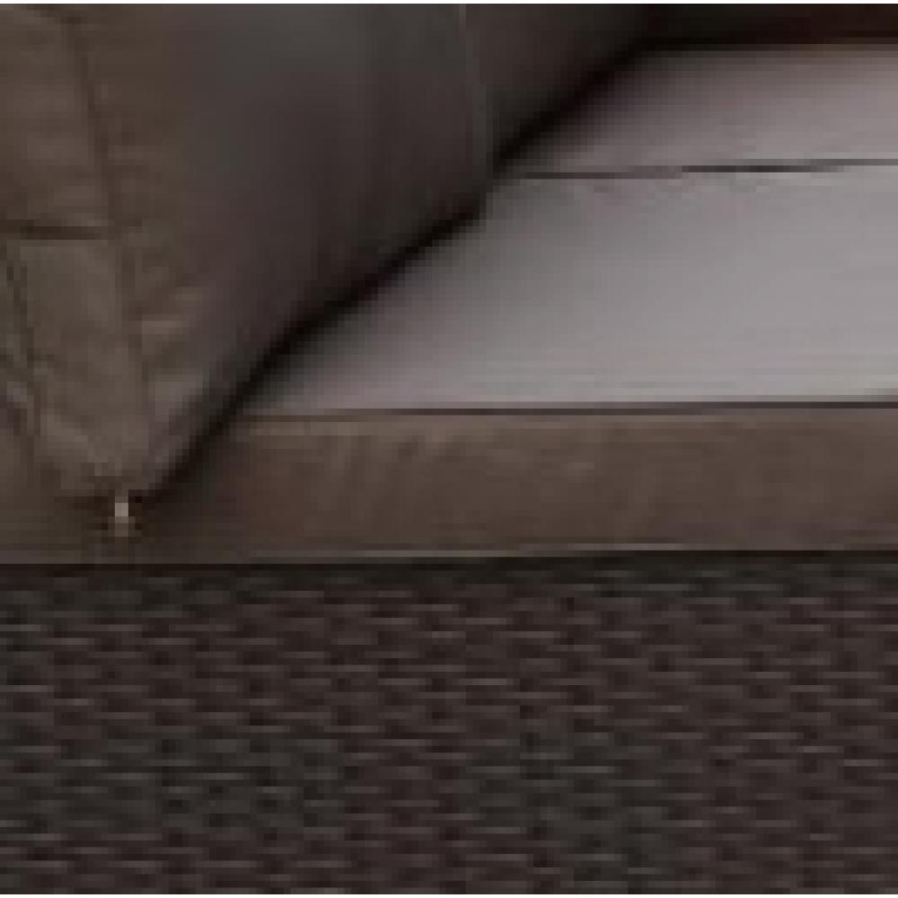 Комплект мебели состоит из: Угол (2шт. ): W72xD72xH63 см.. Середина (4 шт. ): W62xD72xH63 см. Стол: L62xW62xH32 см. Стекло: закаленное-5мм. Каркас: сталь. Материал: искусственный ротанг. Цвет: Brown. Подушки для сидения (10см. ) в комплекте коричневого цвета. Оттенки на фото и дизайн подушек могут отличаться от образца. Две декоративные подушки в комплекте.