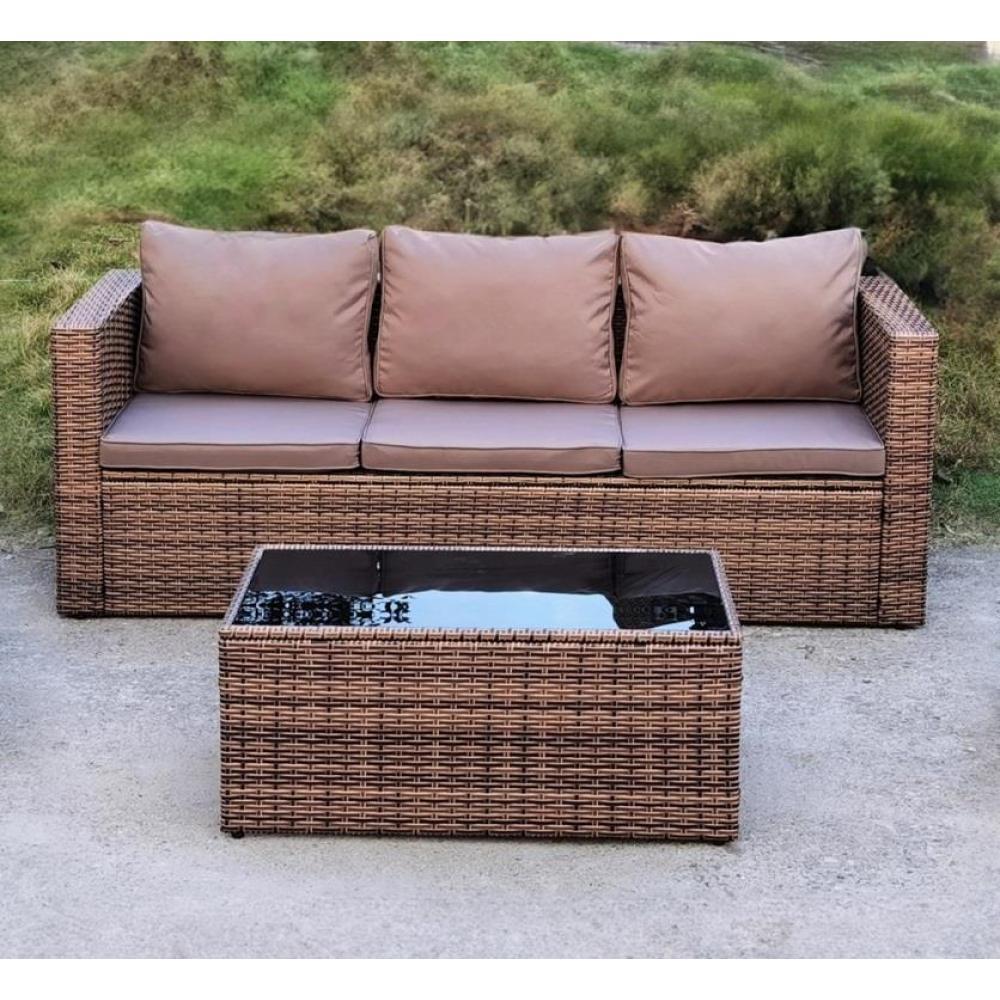 Комплект плетеной мебели AFM-302AL Brown от бренда Afina. В составе комплекта: трехместный диван, журнальный стол и 2 кресла. Высококачественная лоза из полиротанга коричневого цвета стойкая к любым атмосферным явлениям. Крепкий стальной каркас с полимерным антивандальным покрытием и отличным качеством сварки. Изделие сплетено вручную нашими мастерами под жестким контролем качества на каждом этапе производства. Лоза максимально приближена по рельефу и текстуре к естественному материалу. Идеально подходит для использования на улице и внутри помещения в любую погоду. Не боится воды, солнца и минусовой температуры. Подушки идут в комплекте.