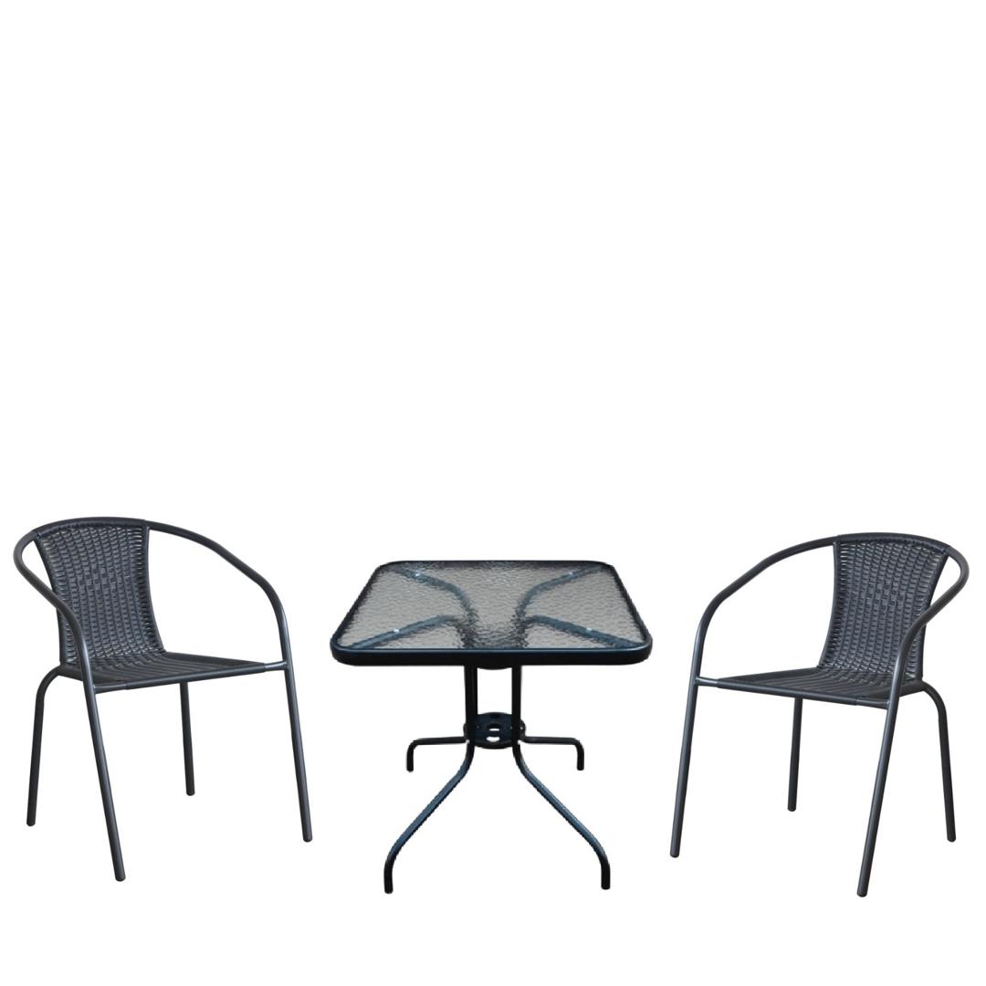 Стол: D60xH70 см. Стекло: закаленное- 5 мм. Труба: сталь с полимерным покрытием. Столешница по периметру БЕЗ искусственного ротанга. Стул: W51хD52хH72 см, без ротанга на подлокотнике Каркас: труба сталь D24. Материал: искусственный ротанг. Цвет: Black. Объем и вес комплекта: 0,32м3, 13,8кг