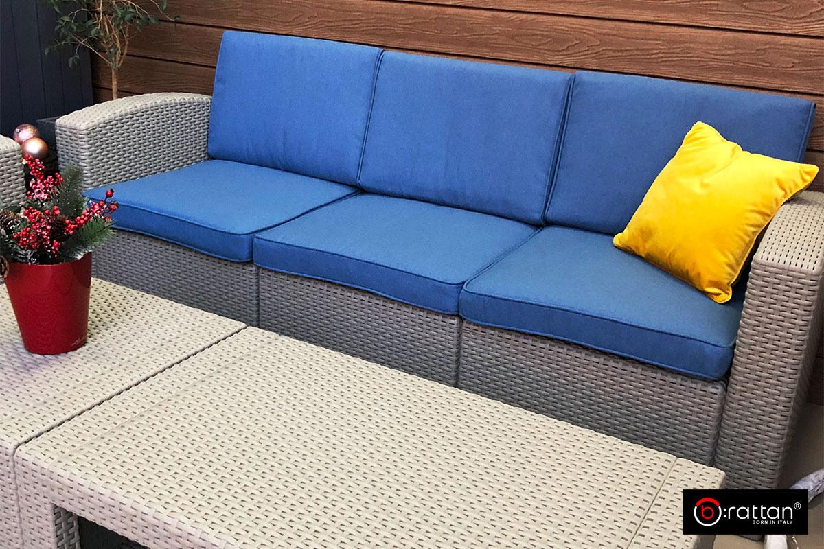 Премиальная итальянская мебель для сада и уличных кафе Раттан Премиум 5 / Rattan Premium 5 от итальянского производителя B:Rattan, включает большой 3-х местный диван, 2 кресла и 2 кофейных столика (прямоугольный и квадратный). Пластиковый комплект порадует любителей плетеной мебели своей фактурой в стиле ротанг и прочностью: максимальная нагрузка на диван и кресло — до 200 кг, на прямоугольный столик — до 100 кг, на квадратный столик до -150 кг.