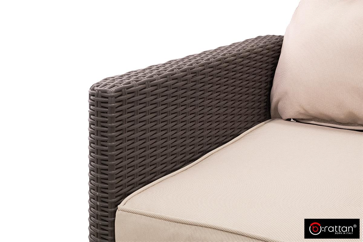 Итальянская уличная мебель для сада и уличных кафе изготовлена из штампованного пластика, на 100% имитирует искусственный ротанг.
