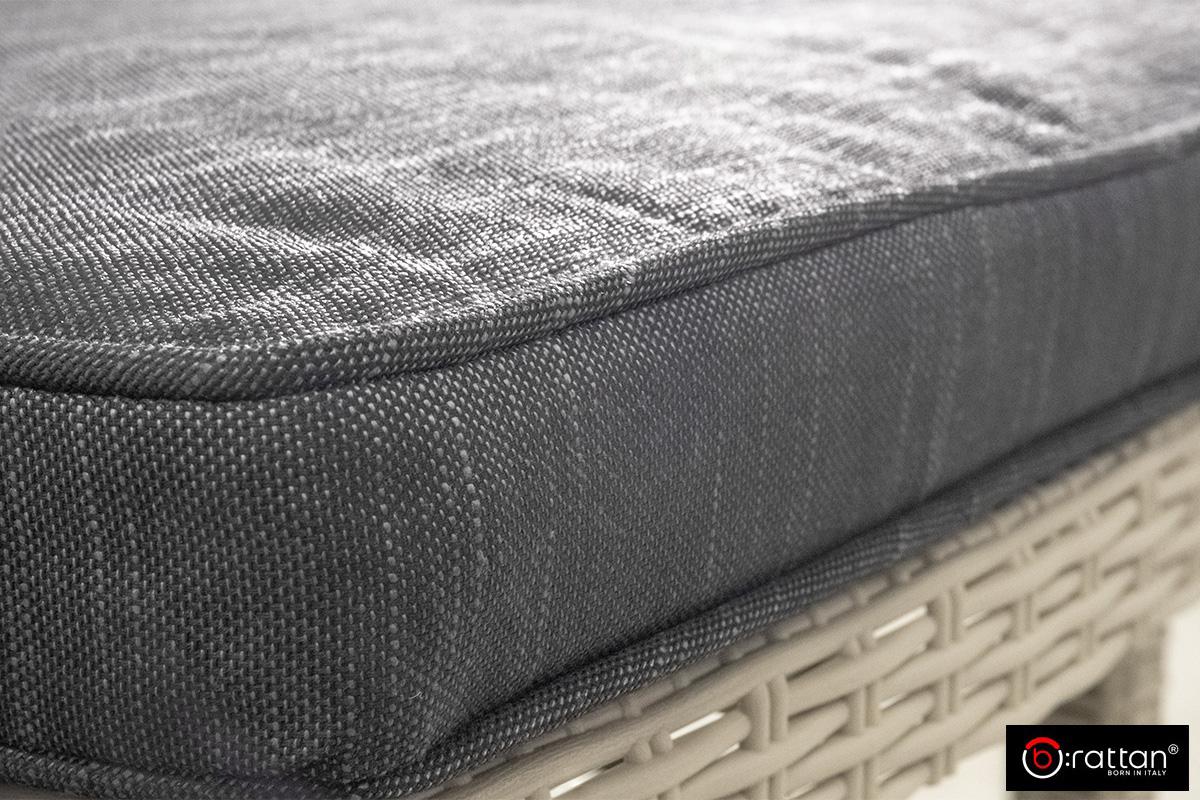 Практичный и легкий материал под ротанг не требует специального ухода, легко очищается водой и мылом. Съемные чехлы на подушках (кроме подушки под спину) делают уход еще более простым.