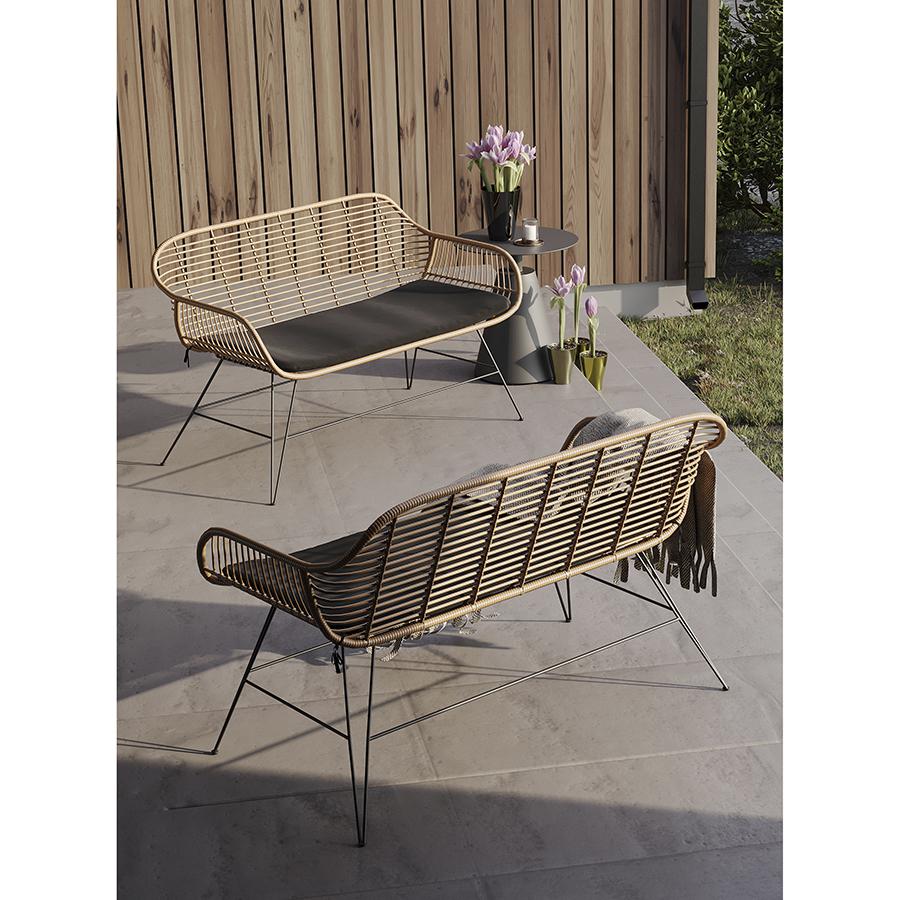 Кушетка Vetle Bent – великолепное сочетание привлекательного дизайна, практичности и долговечности. Мебель с ротанговым плетением делает любое пространство уютным и идеально подходит для обустройства зоны отдыха в доме, на террасе или в саду. Особенности и преимущества: - Покрытие голландской фирмы AkzoNobel, лидера в производстве покрытий для металлических изделий, обеспечивает мебели высокую износостойкость и возможность использования в уличных условиях. - Кушетка имеет высокопрочное основание из холоднокатанного цельного стального стержня диаметром 10 мм. - Круговая полная сварка по всей поверхности соприкосновения шва гарантирует конструкции надежность и долговечность. - Искусственный ротанг устойчив к воздействию влаги, пятнам, УФ-излучению и любым погодным условиям, выдерживает температуру от -10 °C до +50 °C. - Чехол на подушку выполнен из гипоаллергенной, водонепроницаемой ткани плотностью 330 г/м2 с защитным покрытием от ультрафиолета. - Внутреннее наполнение подушки – быстросохнущая пена толщиной 4 см. - Кушетка выдерживает высокие нагрузки до 135 кг. - Гарантия на мебель – 12 месяцев. Коллекция уличной мебели из искусственного ротанга Vetle поможет создать уютный уголок, где время замирает, позволяя насладиться моментом. Каждый предмет призван дарить комфорт и украшать собой любое пространство, будь то садовый участок, терраса или кафе на свежем воздухе. Наши стулья, банкетки и столики выполнены с вниманием к деталям и любовью к дизайну. Приятный бонус – мягкие подушки с наполнителем из быстросохнущей пены, которые обеспечивают дополнительное удобство во время отдыха под открытым небом. Искусственный ротанг, с его прекрасными эксплуатационными характеристиками, и специальное покрытие голландской фирмы AkzoNobel делают мебель устойчивой к погодным условиям и долговечной. Материал: искусственный ротанг, сталь, полиэстер, пенополиуретан. Высота сиденья: 42 см. Ширина сиденья: 121 см. Глубина сиденья: 48 см. Высота спинки: 42 см. Ширина спинки: 121 см. Высота подлокотников: 21 см. Расстояние между ножками: 122 см и 62 см. Высота подушки: 4 см. Максимальная нагрузка: 135 кг. Пыль и загрязнения можно удалять с поверхностей при помощи мягкого влажного материала. Чехол от подушки можно стирать в стиральной машине при температуре до +50 °С.