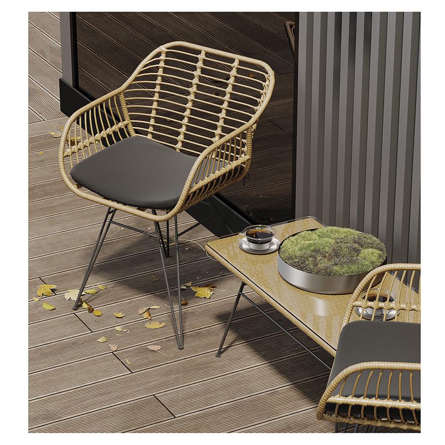 Столик журнальный Vetle – стильный акцент, который украсит собой любое пространство. Сочетание элементов из стали, искусственного ротанга и стекла обеспечивает мебели интересный вид и делает ее практичной и долговечной. Особенности и преимущества: - Покрытие голландской фирмы AkzoNobel, лидера в производстве покрытий для металлических изделий, обеспечивает мебели высокую износостойкость и возможность использования в уличных условиях. - Столик имеет высокопрочное основание из холоднокатанного цельного стального стержня диаметром 10 мм. - Круговая полная сварка по всей поверхности соприкосновения шва гарантирует конструкции надежность и долговечность. - Столешница выполнена из ударопрочного закаленного стекла толщиной 5 мм. - Искусственный ротанг устойчив к воздействию влаги, пятнам, УФ-излучению и любым погодным условиям, выдерживает температуру от -10 °C до +50 °C. - Столик выдерживает нагрузку до 60 кг. - Гарантия на мебель – 12 месяцев. Коллекция уличной мебели из искусственного ротанга Vetle поможет создать уютный уголок, где время замирает, позволяя насладиться моментом. Каждый предмет призван дарить комфорт и украшать собой любое пространство, будь то садовый участок, терраса или кафе на свежем воздухе. Наши стулья, банкетки и столики выполнены с вниманием к деталям и любовью к дизайну. Приятный бонус – мягкие подушки с наполнителем из быстросохнущей пены, которые обеспечивают дополнительное удобство во время отдыха под открытым небом. Искусственный ротанг, с его прекрасными эксплуатационными характеристиками, и специальное покрытие голландской фирмы AkzoNobel делают мебель устойчивой к погодным условиям и долговечной. Материал: сталь, искусственный ротанг, стекло. Размеры: 80х40х40 см. Расстояние между ножками: 73 см и 36 см. Пыль и загрязнения можно удалять с поверхностей при помощи мягкого влажного материала. Для очищения столешницы можно использовать специальное средство для стекол. Запрещается применение абразивов и агрессивной бытовой химии.