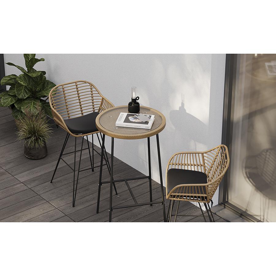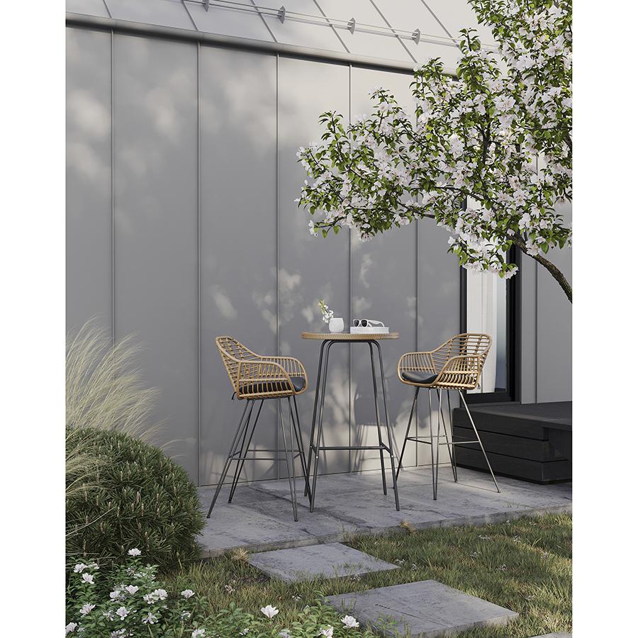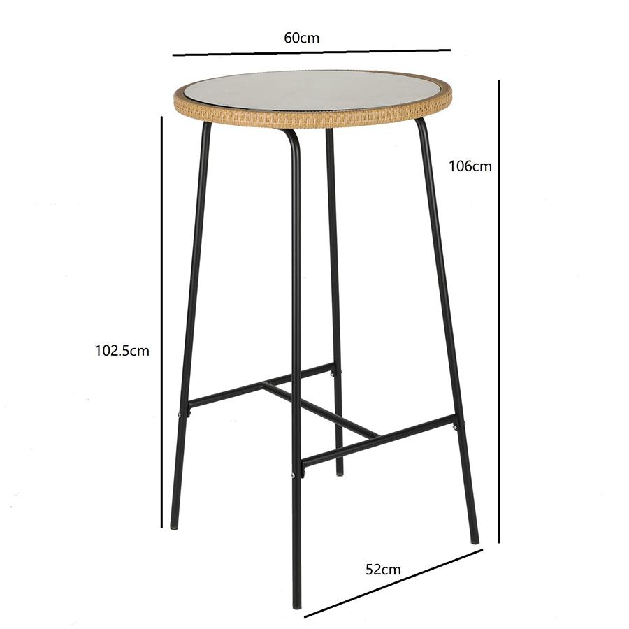 Столик барный Vetle – стильный акцент, который украсит собой любое пространство. Сочетание элементов из стали, искусственного ротанга и стекла обеспечивает мебели интересный вид и делает ее практичной и долговечной. Особенности и преимущества: - Покрытие голландской фирмы AkzoNobel, лидера в производстве покрытий для металлических изделий, обеспечивает мебели высокую износостойкость и возможность использования в уличных условиях. - Каркас столешницы – стальная трубка диаметром 16 мм и толщиной 0,8 мм, основание – стальная трубка диаметром 16 мм и толщиной 1,2 мм. - Круговая полная сварка по всей поверхности соприкосновения шва гарантирует конструкции надежность и долговечность. - Столешница выполнена из ударопрочного закаленного стекла толщиной 5 мм. - Искусственный ротанг устойчив к воздействию влаги, пятнам, УФ-излучению и любым погодным условиям, выдерживает температуру от -10 °C до +50 °C. - Столик выдерживает нагрузку до 60 кг. - Гарантия на мебель – 12 месяцев. Коллекция уличной мебели из искусственного ротанга Vetle поможет создать уютный уголок, где время замирает, позволяя насладиться моментом. Каждый предмет призван дарить комфорт и украшать собой любое пространство, будь то садовый участок, терраса или кафе на свежем воздухе. Наши стулья, банкетки и столики выполнены с вниманием к деталям и любовью к дизайну. Приятный бонус – мягкие подушки с наполнителем из быстросохнущей пены, которые обеспечивают дополнительное удобство во время отдыха под открытым небом. Искусственный ротанг, с его прекрасными эксплуатационными характеристиками, и специальное покрытие голландской фирмы AkzoNobel делают мебель устойчивой к погодным условиям и долговечной. Материал: сталь, искусственный ротанг, стекло. Размеры: 60х52х106 см. Диаметр столешницы: 60 см. Расстояние между ножками: 52 см. Пыль и загрязнения можно удалять с поверхностей при помощи мягкого влажного материала. Для очищения столешницы можно использовать специальное средство для стекол. Запрещается применение абразивов и агрессивной бытовой химии.