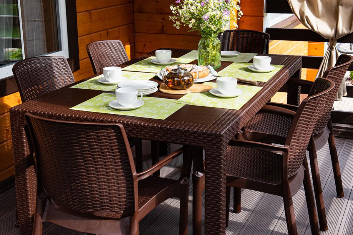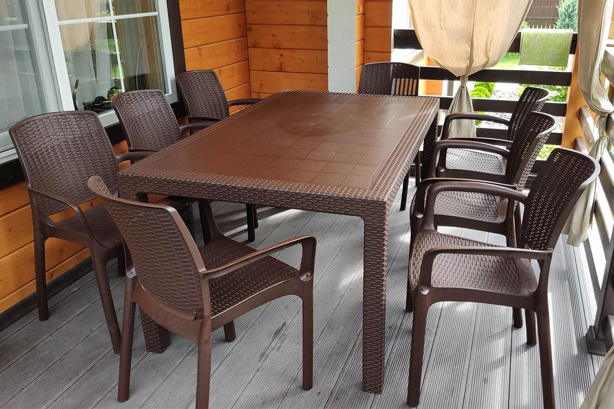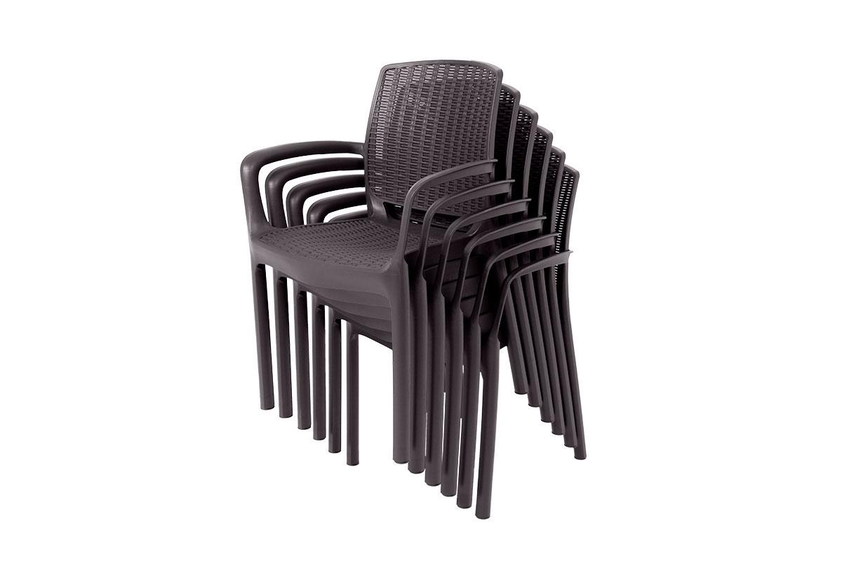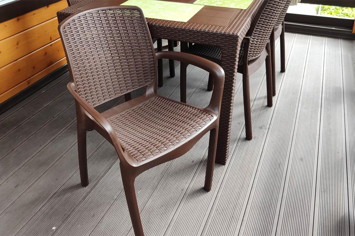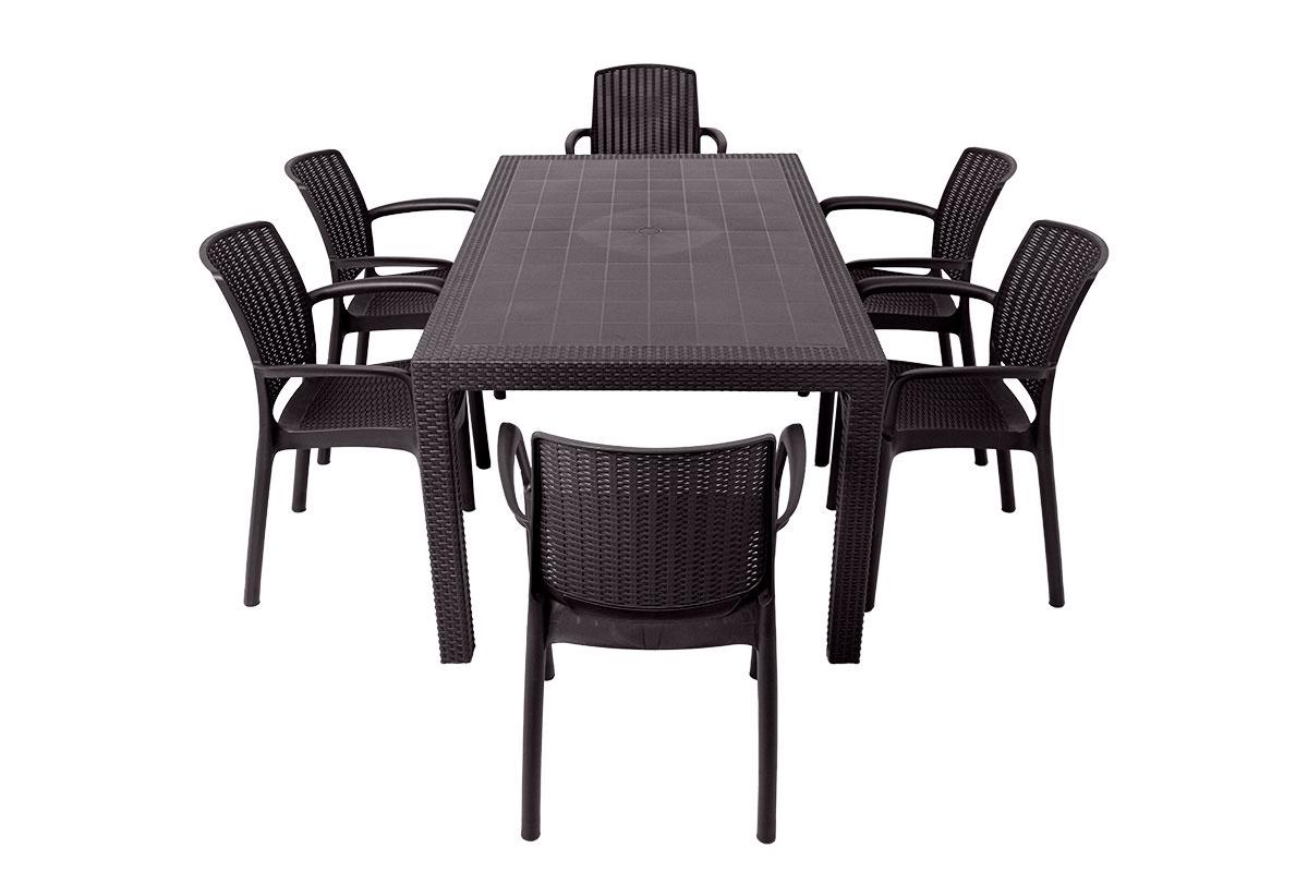 Комплект от российского производителя Gardeck включает 6 стульев с подлокотниками и 1 обеденный стол, идеально подойдёт для оформления садового участка, позволяет с комфортом разместиться Вам и Вашим гостям на террасе или балконе в количестве 6 человек.