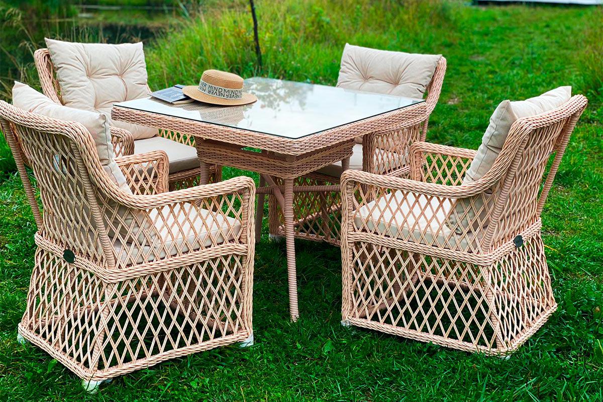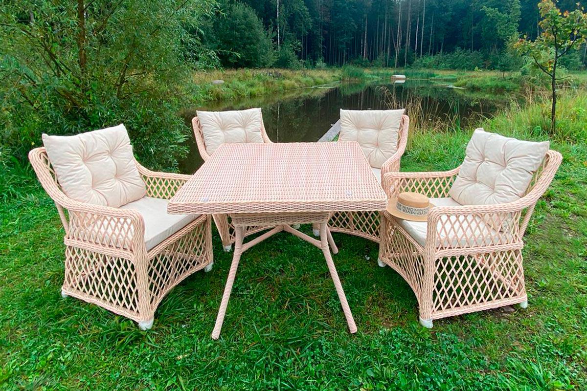 Модель - Плетеный комплект мебели MOKKA VILLA ROSA (4 персоны) + 8 подушек