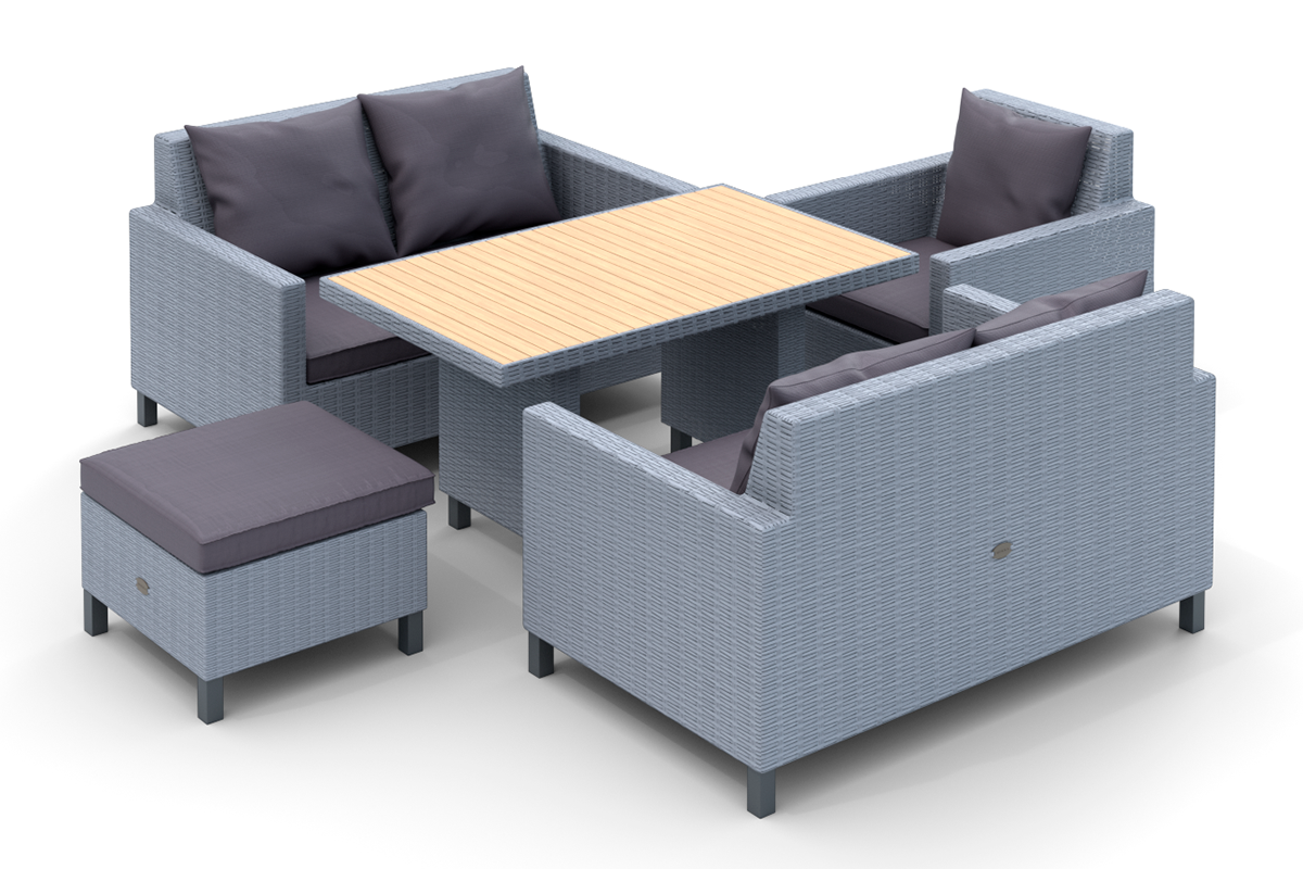 Внешние габариты, см - стол: 170х100х70, диван: 140х82.5х84.4, кресло: 76х82х84.4, пуф: 58х58х43