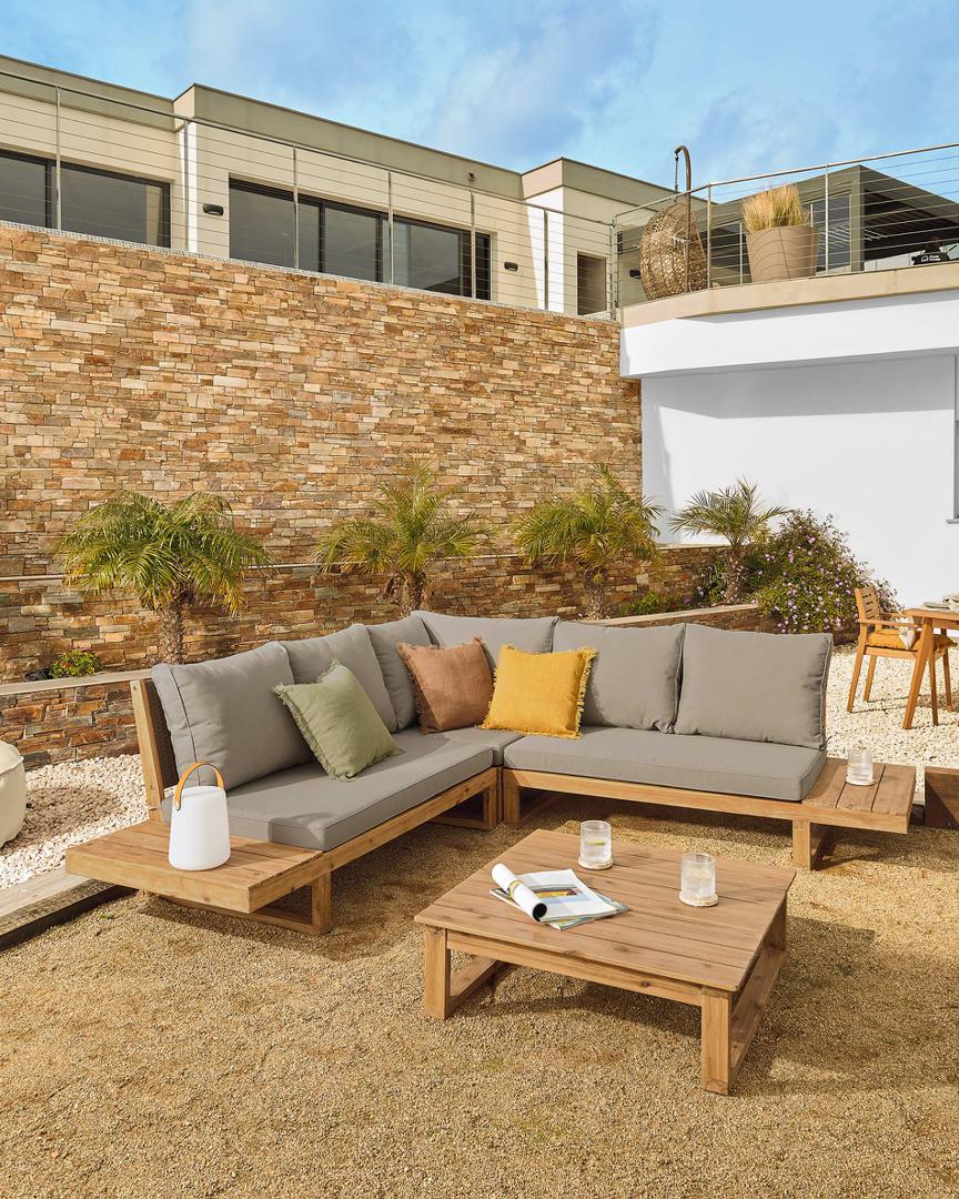 Комплект La Forma (ех Julia Grup) Flaviina Угловой 5-местный диван со столиком из дерева акации арт. 097598