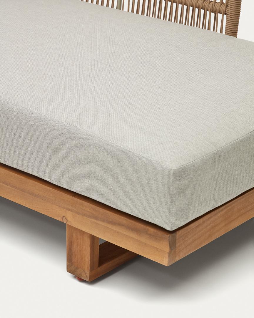 Raco 5-местный угловой диван и журнальный столик от фабрики La Forma (ex Julia Grup) – идеальный массив акации для комплексного обустройства вашей террасы. Комплект Raco – готовое решение для любой открытой территории. Отдых в компании будет удобнее, если возле большого вместительного дивана будет стоять стол с напитками и едой. Особенно, если предлагаемый комплект так откровенно и прекрасно демонстрирует природную красоту древесины. Подумайте наперед, добавьте красоты с комплектом Raco! Каркас дивана и стол сделаны из массива акации ,который покрыт лаком для защиты от солнца и влаги. Для надежности и стойкости к нагрузкам, увеличено количество ножек. А основание имеет толщину в пять сантиметров. Диван рассчитан на максимальную нагрузку в 500 кг. Подушки заполнены пенополистиролом, который не впитывает запахи, хорошо держит форму. Чехлы у них съемные, сшиты из прочного полиэстера с защитой от выгорания цвета. Их можно стирать в машинке на холодном режиме. Вместимость – 5 человек. Размеры дивана: ширина – 265 см, высота – 65 см, глубина – 200 см. Общий вес комплекта: 65 кг. Рекомендации по уходу: чистка мягким моющим средством, не использовать без навеса в сезон дождей.