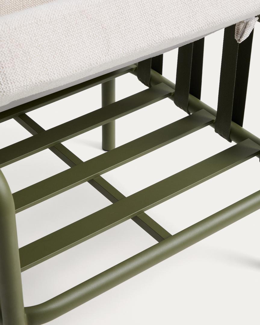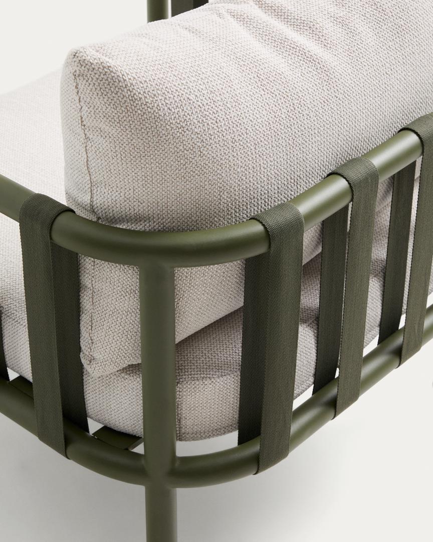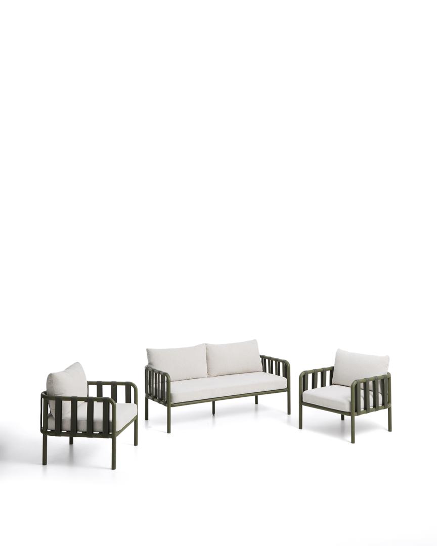 Комплект Omala создан для комфортного отдыха на природе. Его алюминиевая конструкция сочетает в себе легкость и прочность, сохраняя свой внешний вид со временем и под воздействием погодных условий. Спинка, изготовленная из атмосферостойкой ткани, адаптируется к телу и обеспечивает удобную осанку. Чехлы на подушки снимаются для удобства ухода; мы рекомендуем убирать их на хранение в дождливую погоду, чтобы сохранить их в хорошем состоянии. Omala сочетает в себе прочные материалы и внимание к деталям.