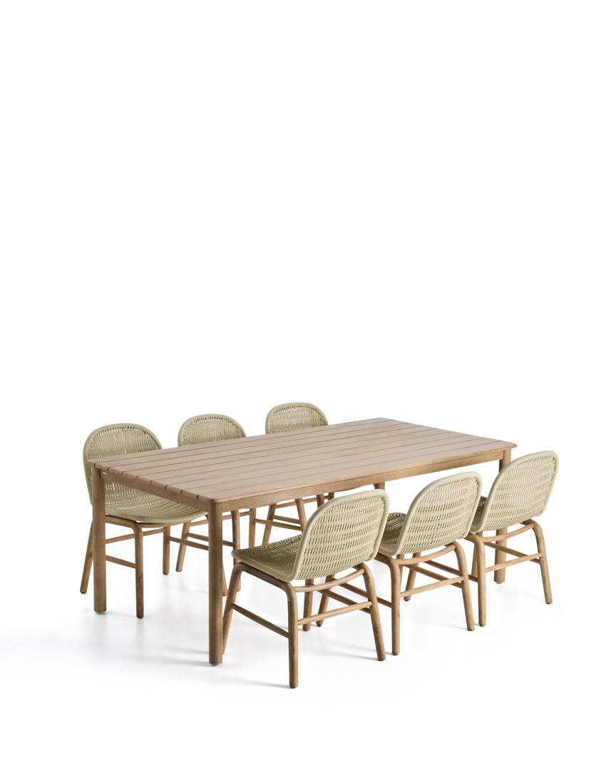Комплект La Forma (ех Julia Grup) Комплект садовой мебели Sori стол и 6 стульев Alipa из акации и веревки цвета экрю арт. 491522