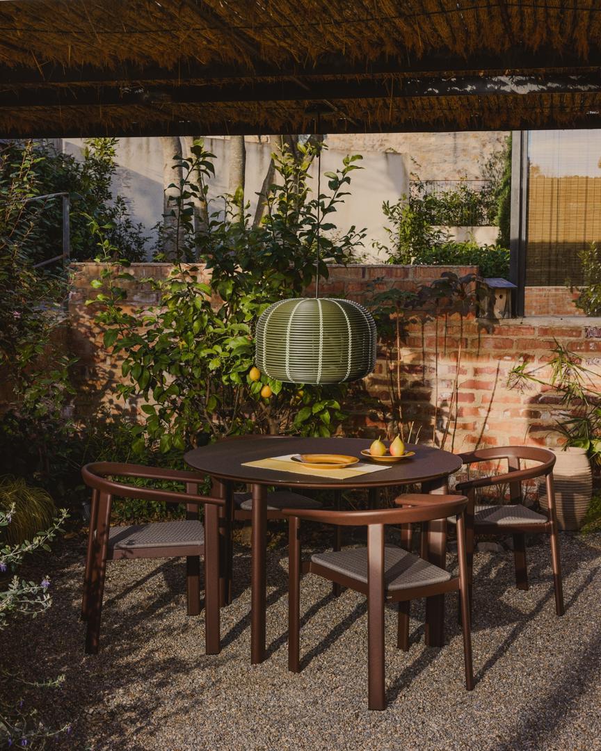 Комплект Erice включает в себя стол с алюминиевым основанием и столешницей из закаленного стекла, окрашенной в цвет каркаса для создания однородной отделки, а также стулья с сиденьями, обитыми веревочным шнуром ручной работы. Закаленное стекло устойчиво к ультрафиолетовому излучению, что помогает сохранить его цвет и внешний вид с течением времени. И стол, и стулья изготовлены из алюминия — легкого и прочного материала для использования на открытом воздухе, обладающего высокой устойчивостью к ржавчине, коррозии и воздействию солнечных лучей.
