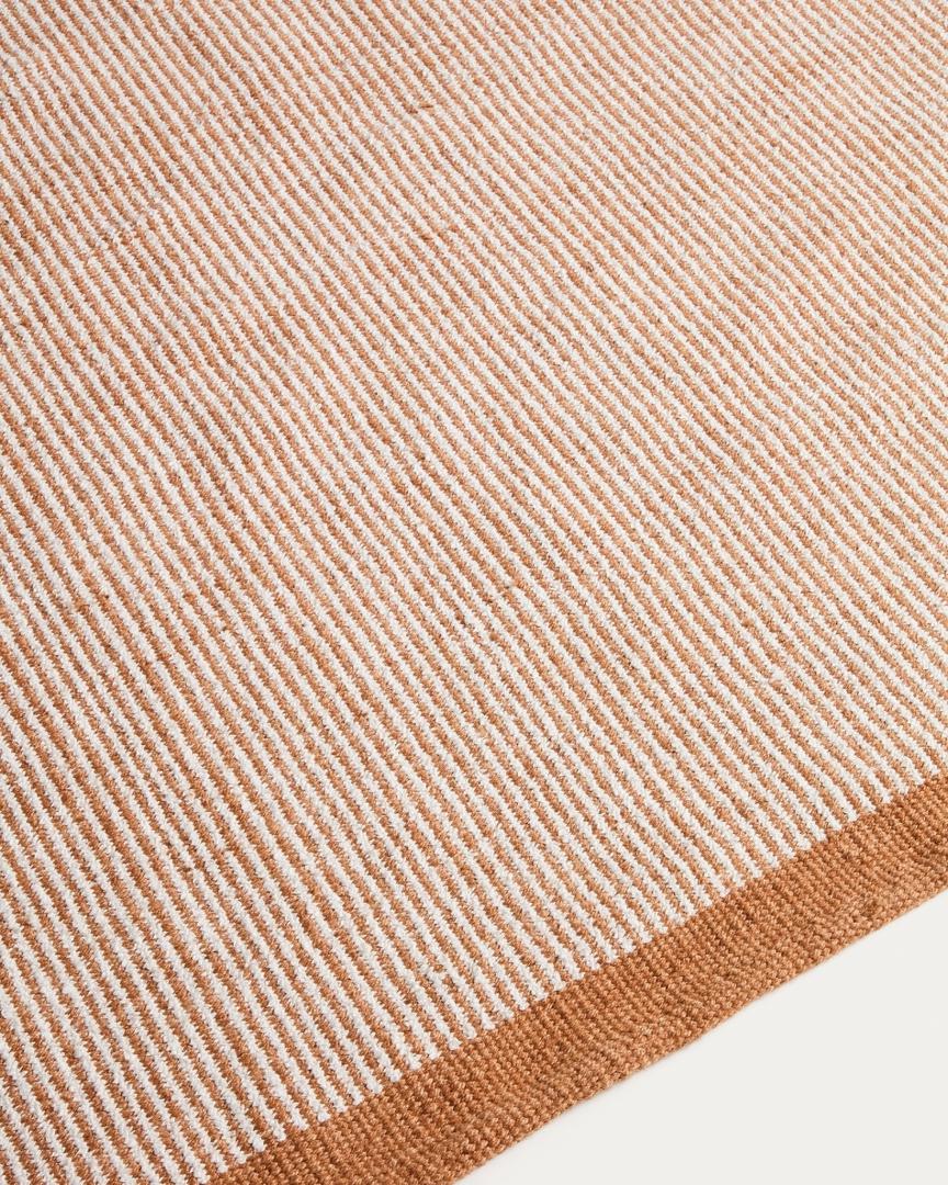 Ковер Tinei изготовлен из ПЭТ-волокон, полученных из переработанных бутылок. Это прочный и простой в уходе материал, предназначенный как для использования внутри, так и снаружи помещений. Его дизайн выделяется полосатой текстурой и яркой цветной полосой по краям. Изготовленный вручную, каждый экземпляр может иметь незначительные вариации, отражающие производственный процесс и добавляющие свои собственные нюансы.