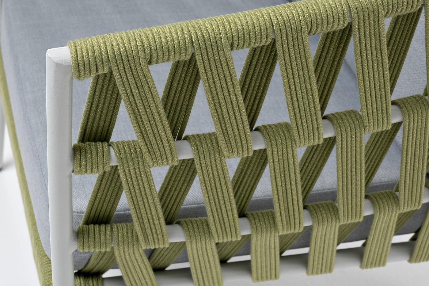 Кресло 4SIS "Диего" кресло плетеное из роупа, каркас алюминий светло-серый (RAL7035) муар, роуп салатовый меланж круглый, ткань светло-серая арт. DIE-A-001 RAL7035 Mua mel-green(H-gray)