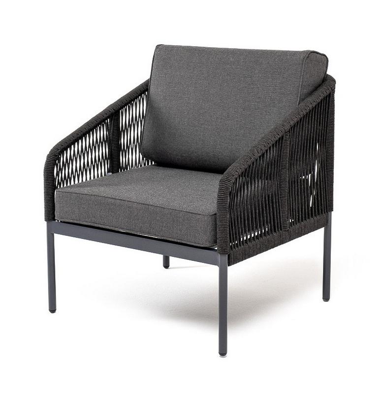 Кресло 4SIS "Канны" кресло плетеное из роупа, каркас алюминий темно-серый (RAL7024) муар, роуп темно-серый круглый, ткань темно-серая 027, высота посадки 45 см арт. KAN-A-001 RAL7024 Mua D-grey(D-gray027)