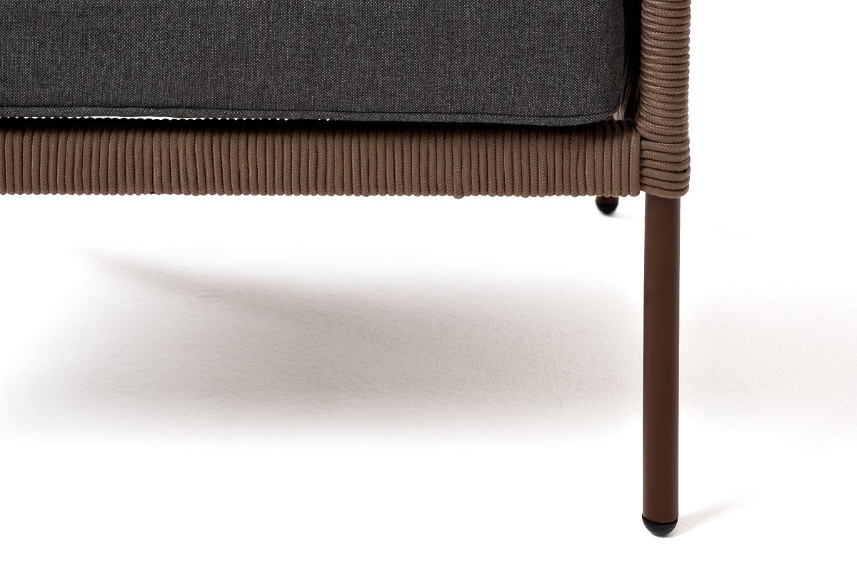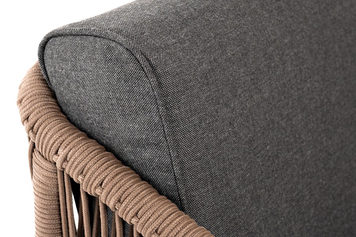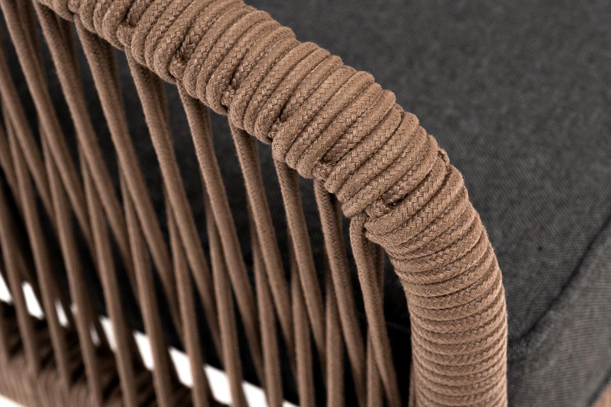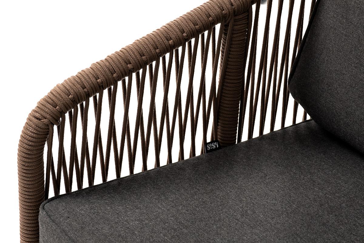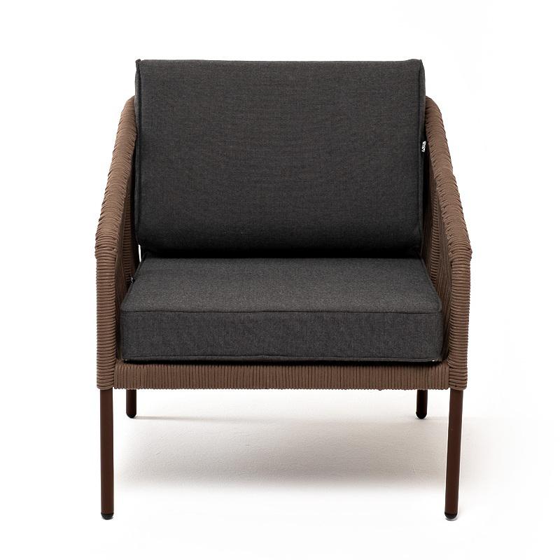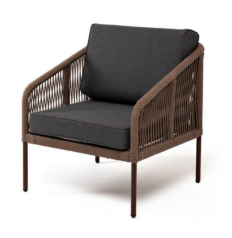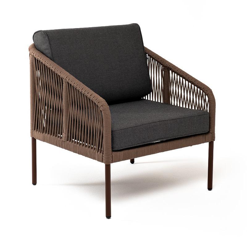 Кресло 4SIS "Канны" кресло плетеное из роупа, каркас алюминий коричневый (RAL8016) муар, роуп коричневый круглый, ткань темно-серая 027 арт. KAN-A-001 RAL8016 Mua brown(D-gray027)