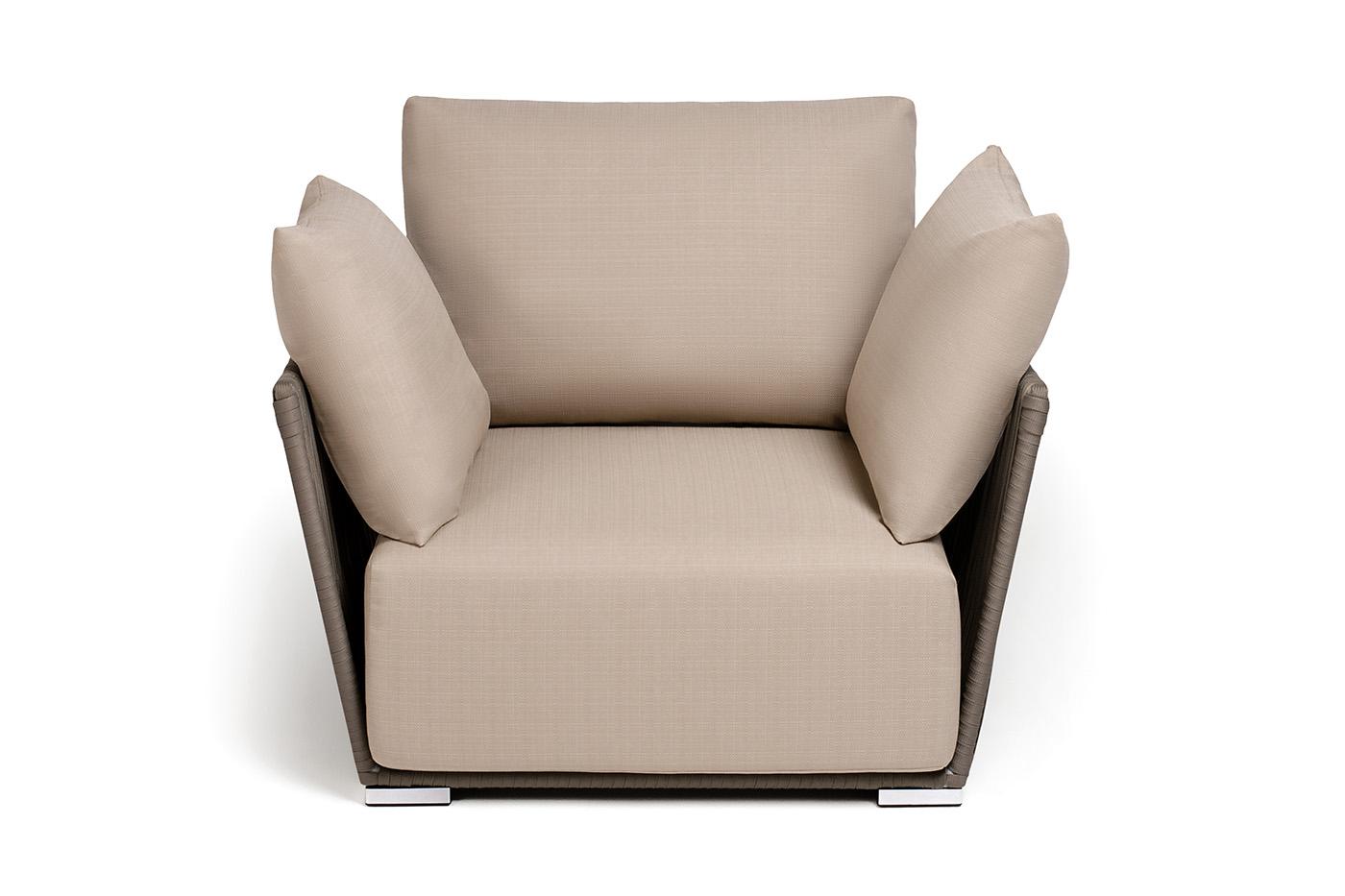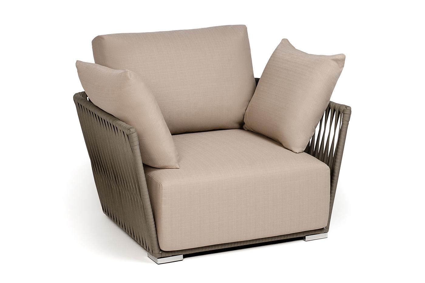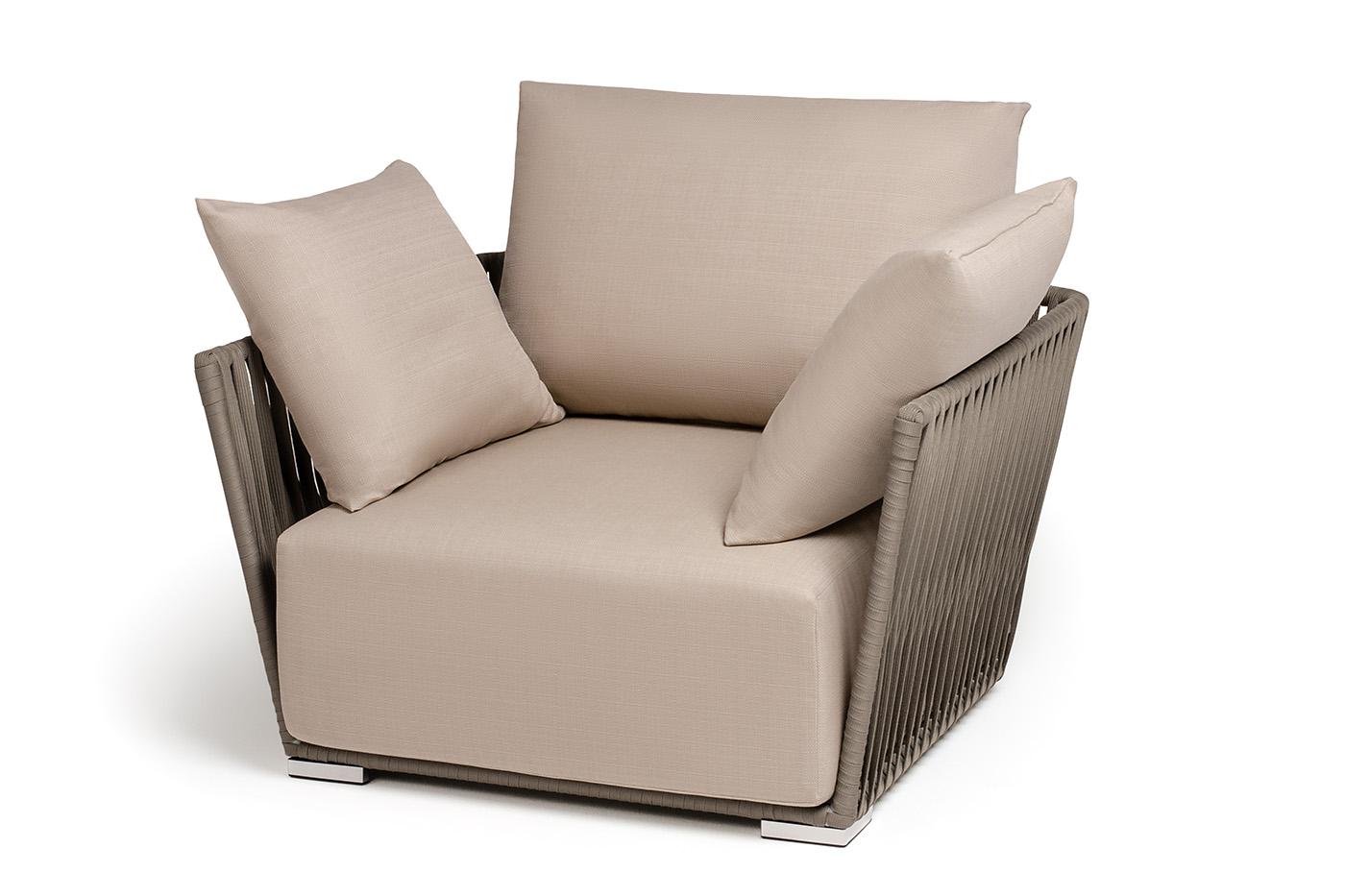 Кресло 4SIS "Форли" кресло плетеное из роупа, каркас алюминий светло-серый (RAL7035) муар, роуп серо-коричневый 23мм, ткань Mossle бежевая арт. FOR-A-002 RAL7035 Mua G-brown(beige160)