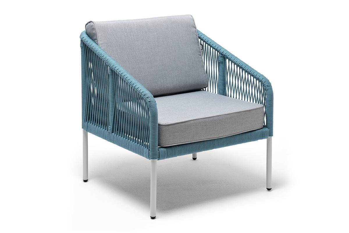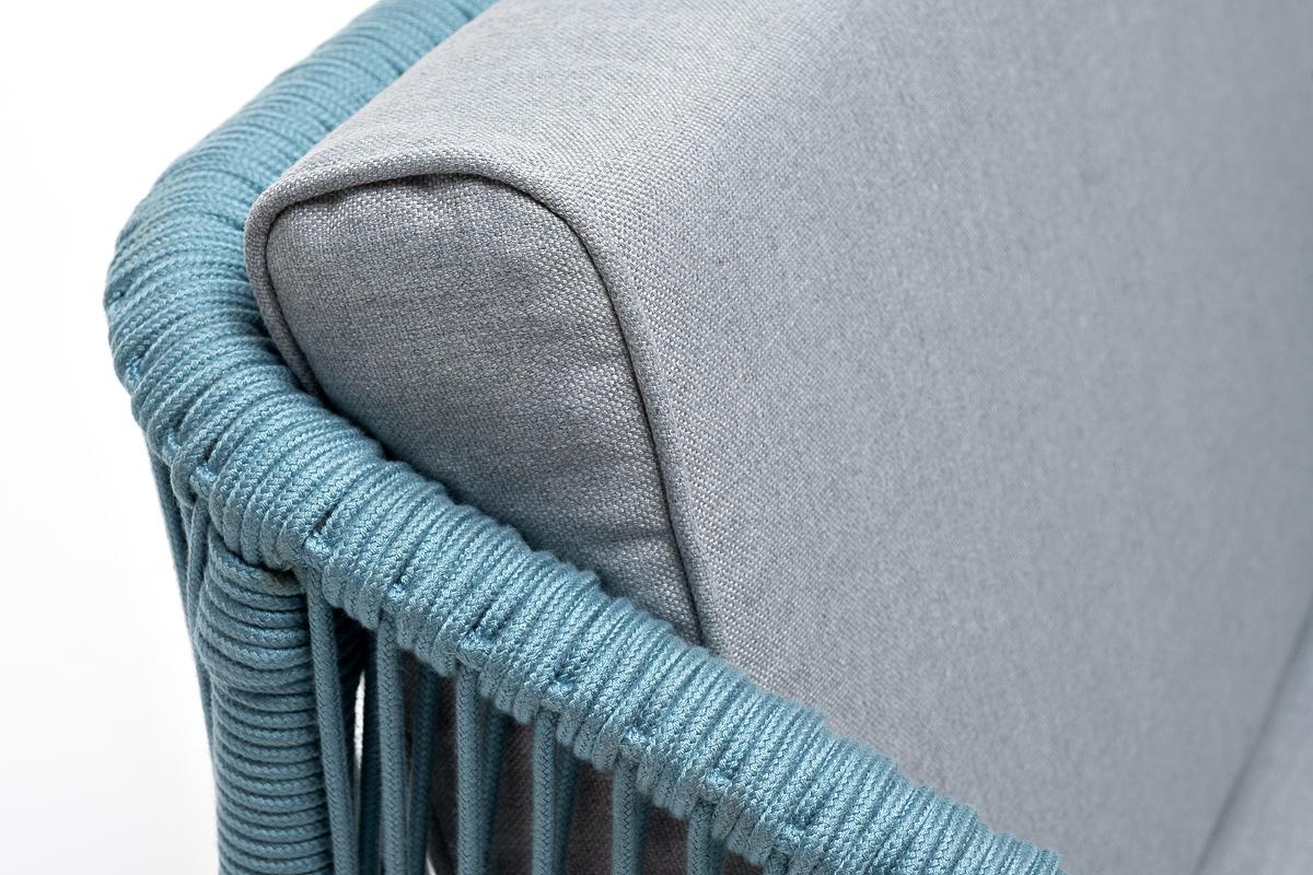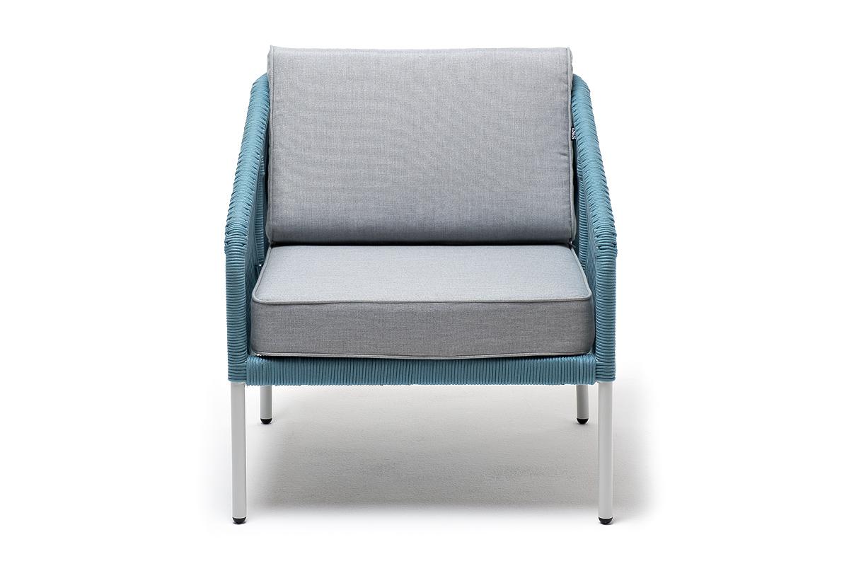 Кресло 4SIS "Канны" кресло плетеное из роупа, каркас алюминий светло-серый (RAL7035) муар, роуп бирюзовый круглый, ткань светло-серая арт. KAN-A-001 RAL7035 Mua blue(H-gray)