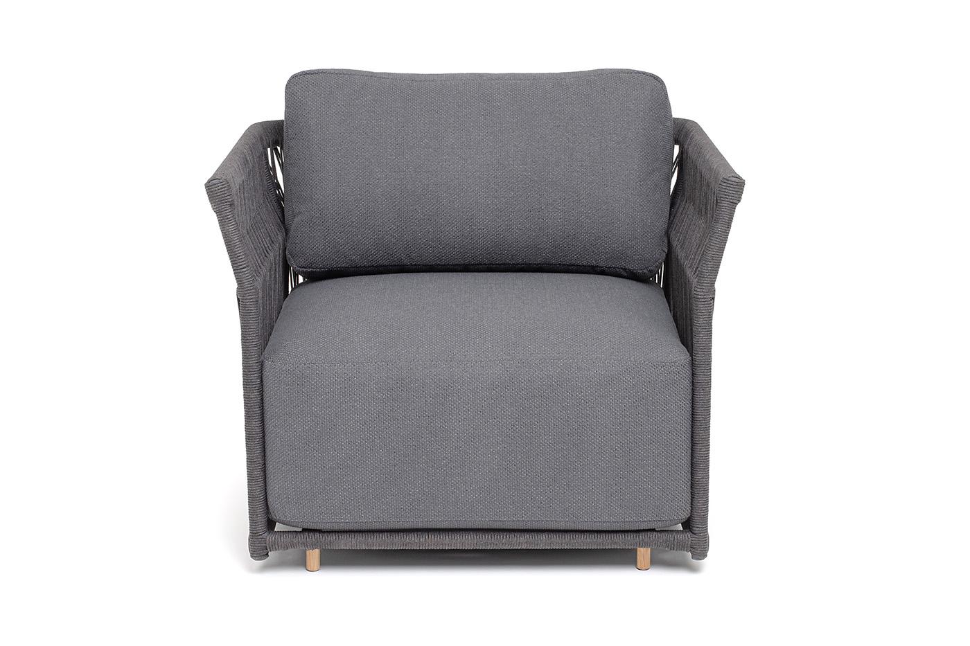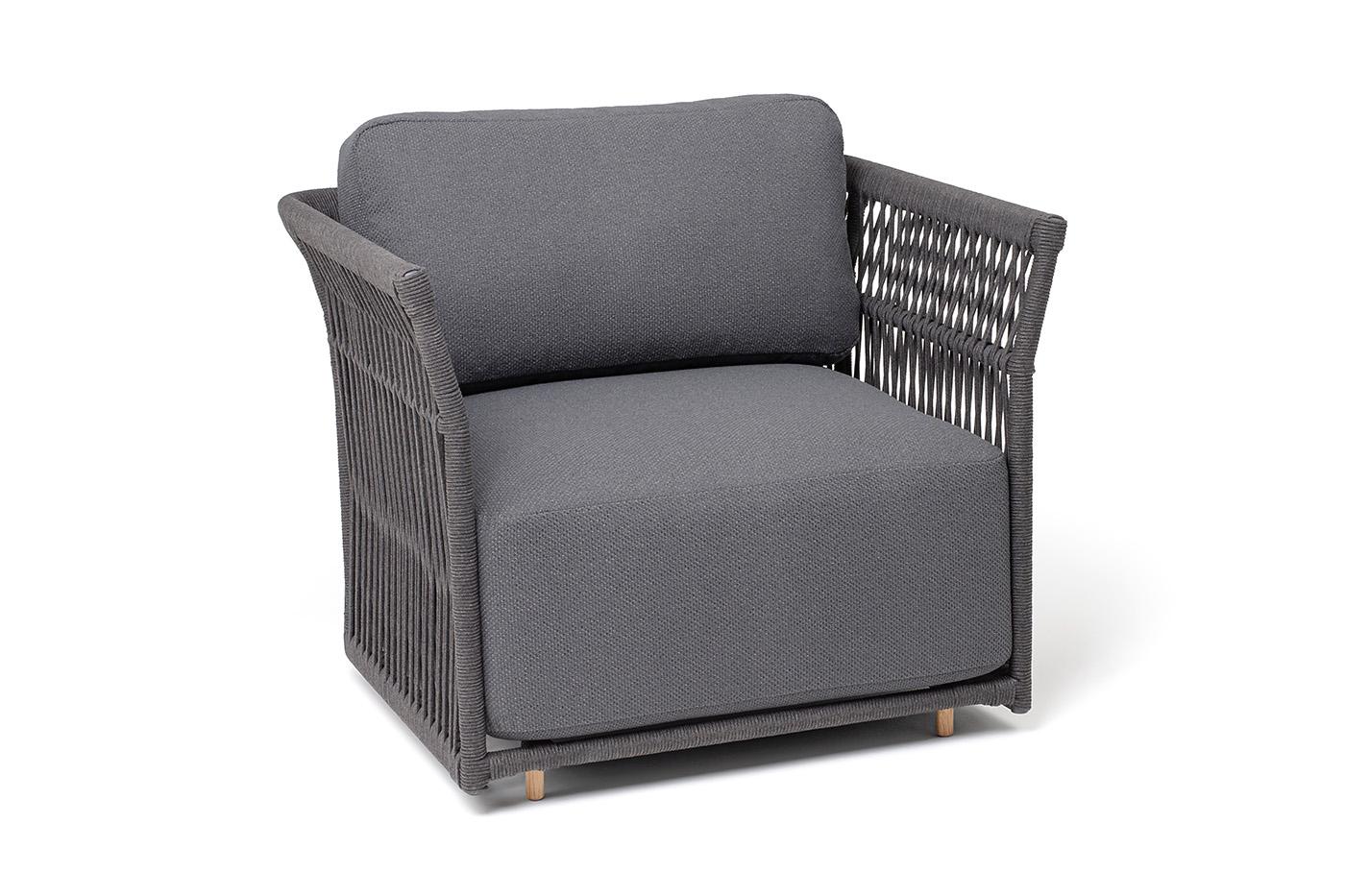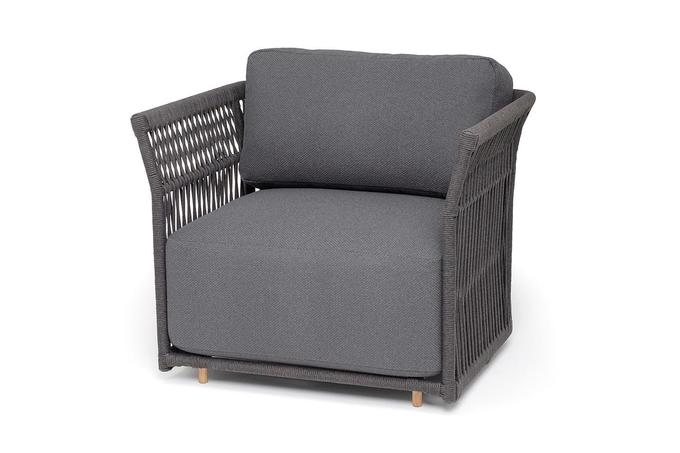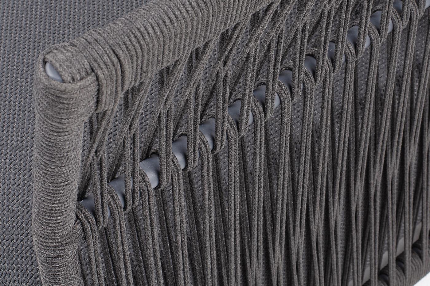 Кресло 4SIS "Лугано" кресло плетеное из роупа, каркас алюминий темно-серый (RAL7024) муар, роуп темно-серый круглый, ткань темно-серая YB25-0027 арт. LUG-A-001 RAL7024 Mua D-grey(D-grayYB25-0027)
