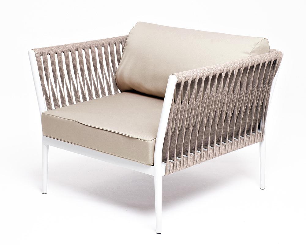 Кресло 4SIS "Касабланка" кресло плетеное из роупа, каркас алюминий светло-серый (RAL7035) муар, роуп серо-коричневый 23мм, ткань бежевая 15052 арт. KAS-A-001 RAL7035 Mua G-brown(beige15052)