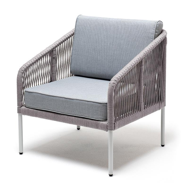 Кресло 4SIS "Канны" кресло плетеное из роупа, каркас алюминий светло-серый (RAL7035) муар, роуп светло-серый круглый, ткань светло-серая арт. KAN-A-001 RAL7035 Mua H-grey(H-gray)