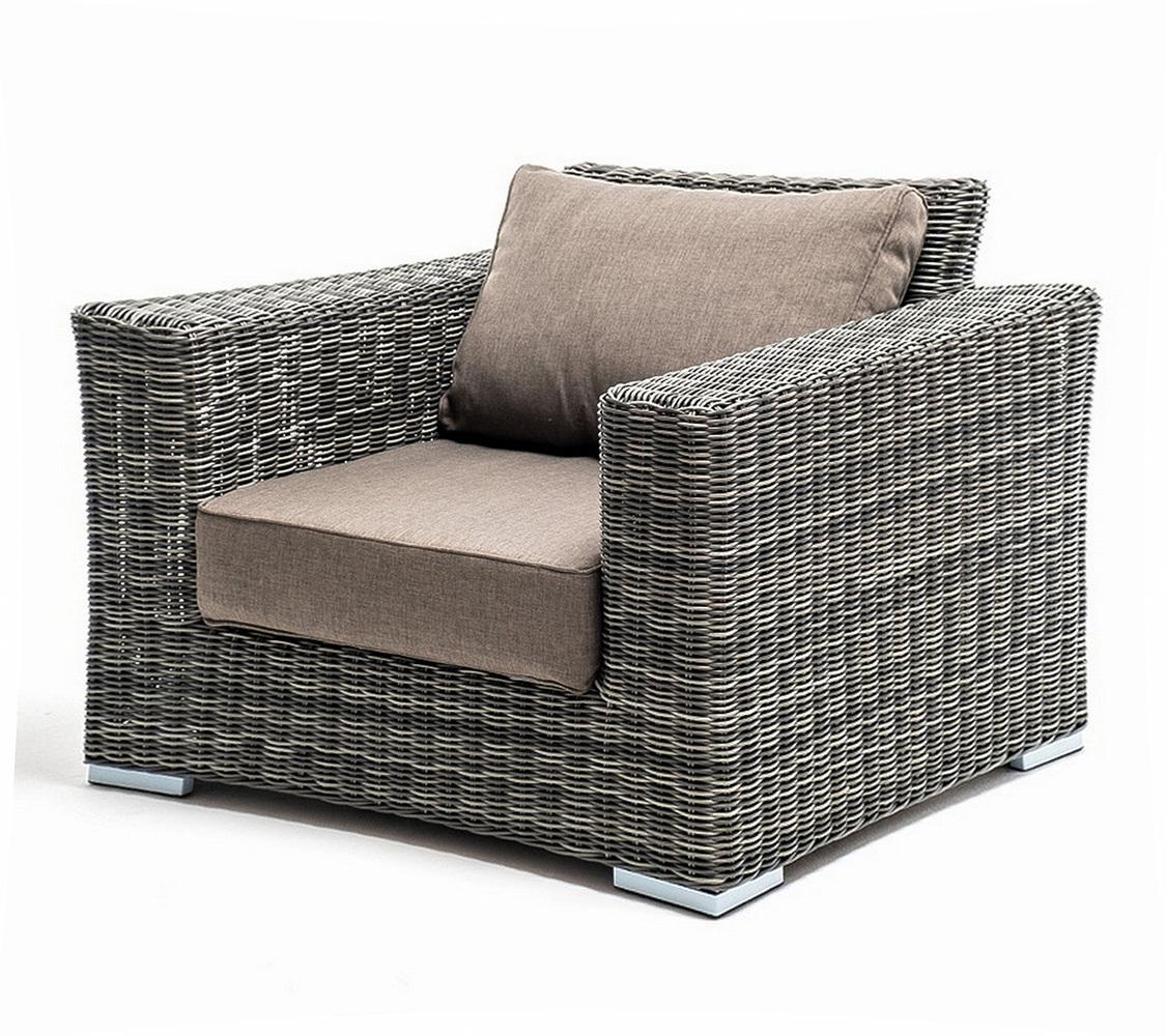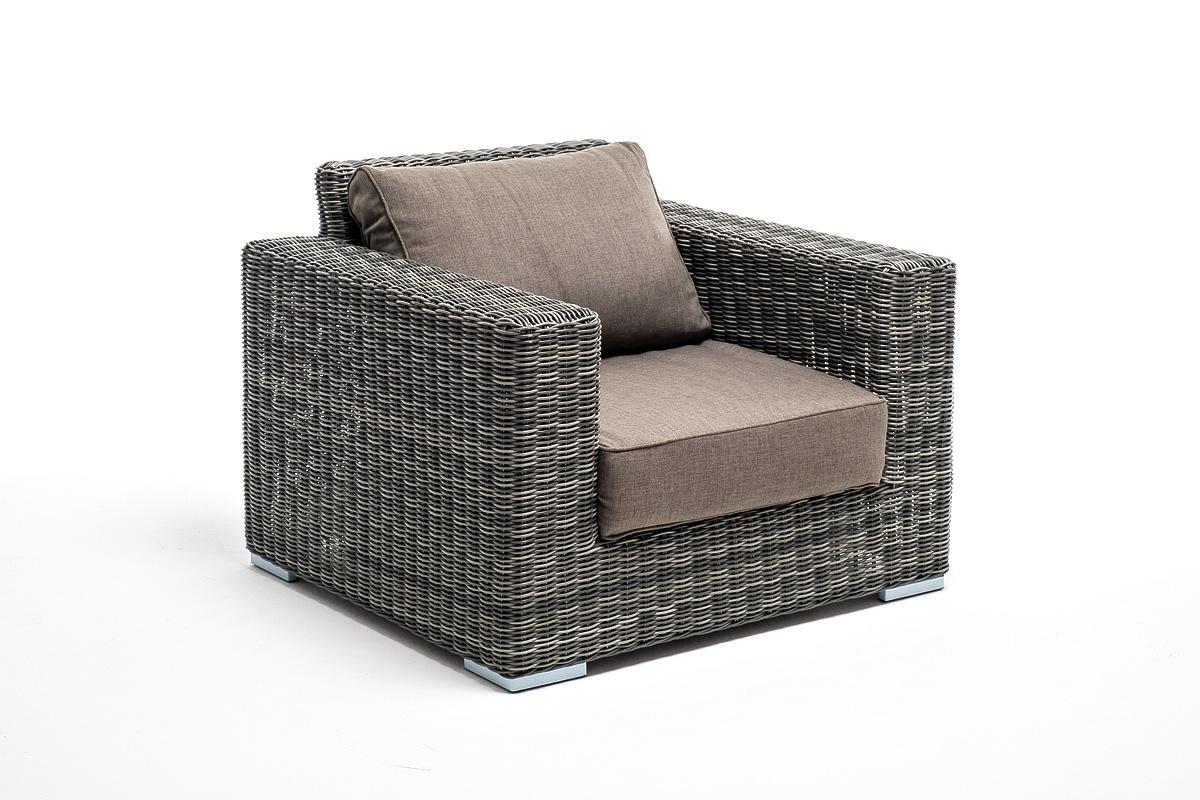 Кресло из искусственного ротанга «Боно» станет прекрасным дополнением к месту отдыха. Кресло оснащено каркасом из прочного алюминия, ручное круглое плетение является основным декоративным элементом мебели. Оно выполнено из искусственного ротанга в графитовом цвете. В комплектацию входят мягкие подушки для комфортного расположения. Чехлы съёмные серого цвета из высококлассного полиэстера с плотностью 300гр/м2. Габариты модели составляют 1000×900×775 мм, толщина подушки: 150 мм, вес: 23 кг. Па