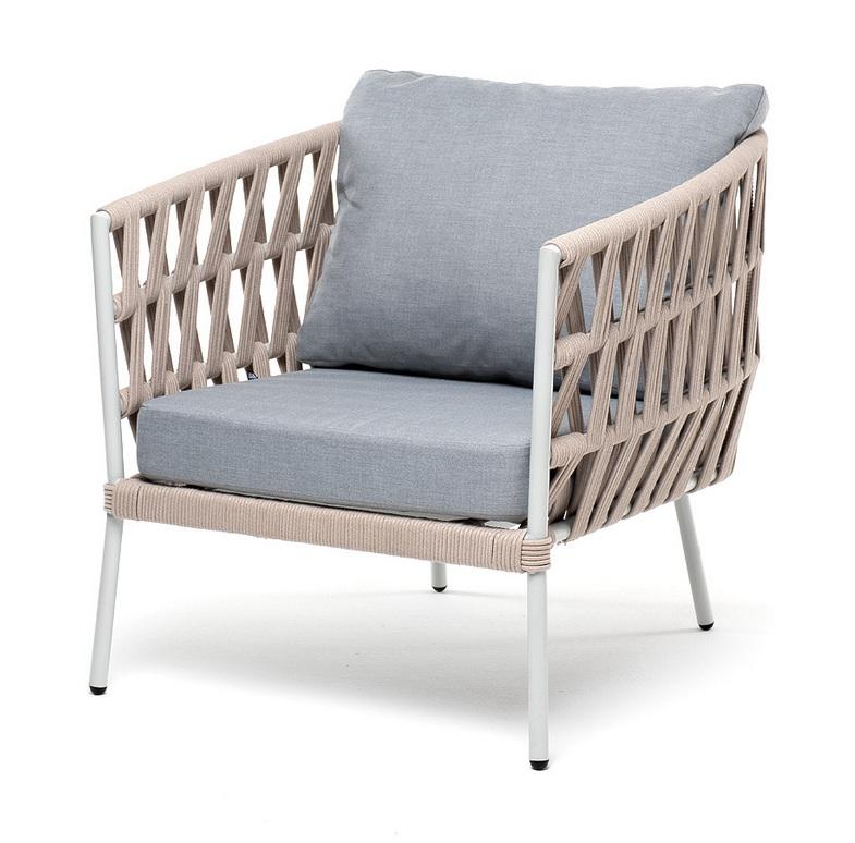 Кресло 4SIS "Диего" кресло плетеное из роупа, каркас алюминий светло-серый (RAL7035) муар, роуп бежевый круглый, ткань светло-серая арт. DIE-A-001 RAL7035 Mua beige(H-gray) OLD
