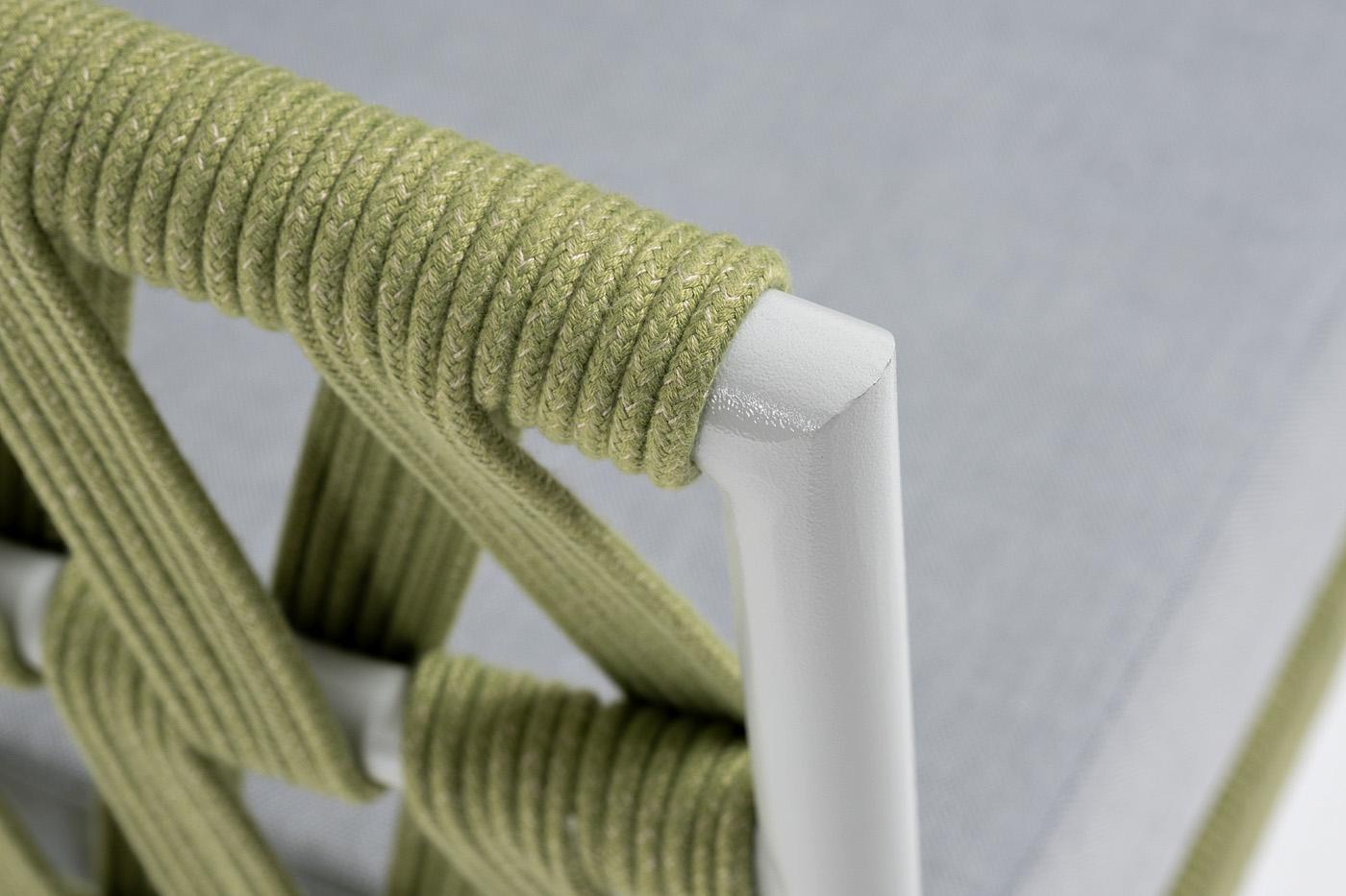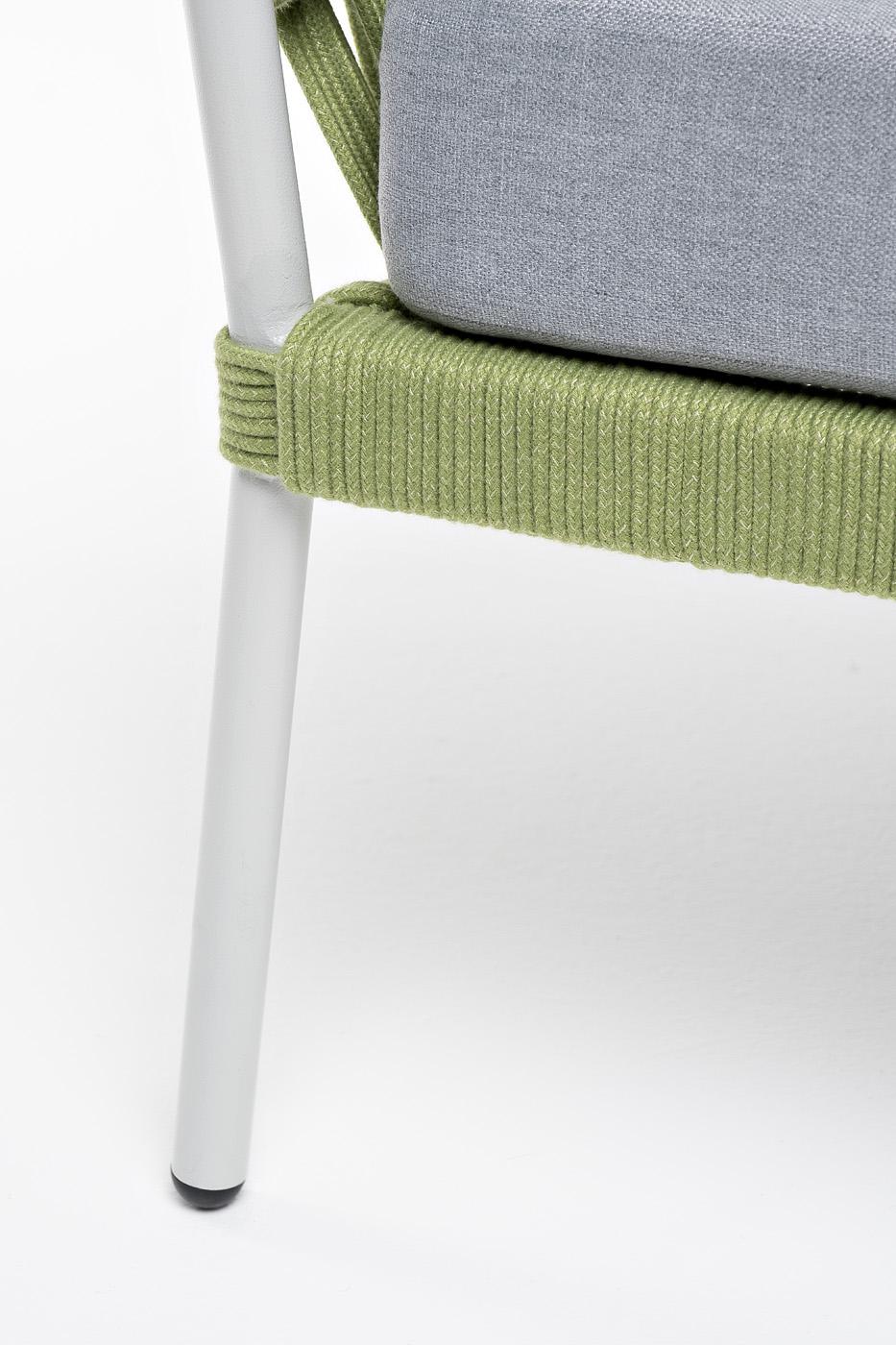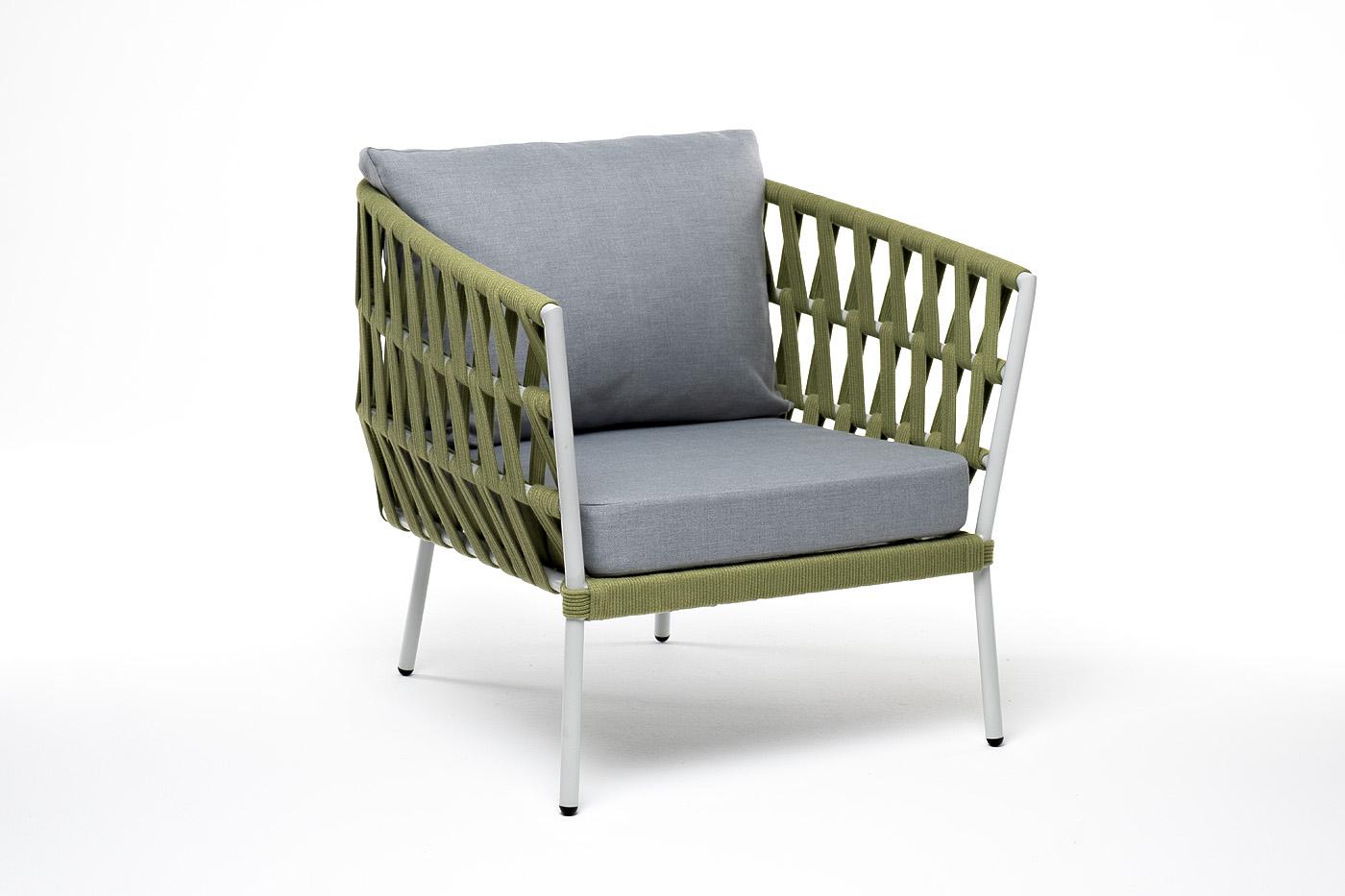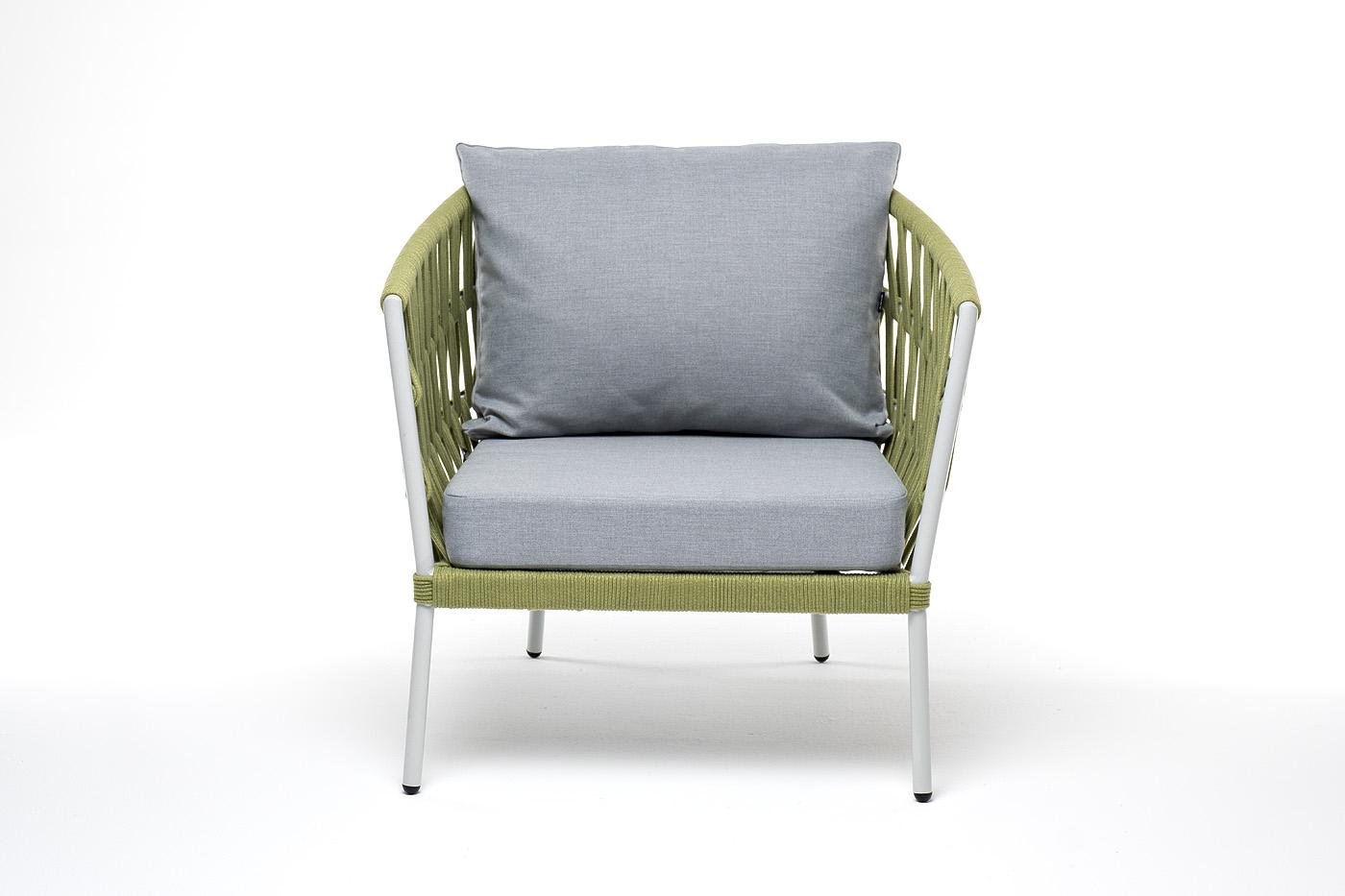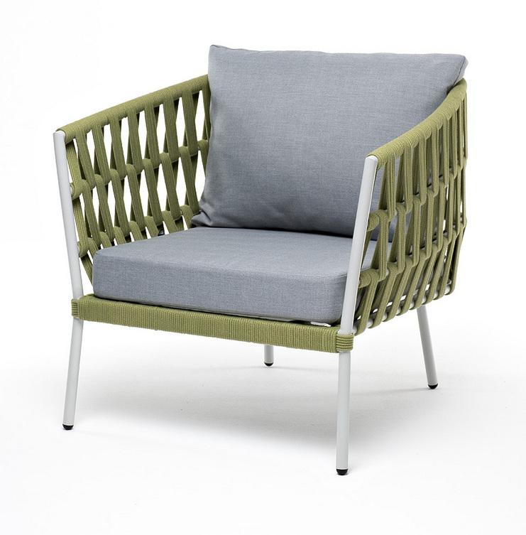 Кресло 4SIS "Диего" кресло плетеное из роупа, каркас алюминий светло-серый (RAL7035) муар, роуп салатовый меланж круглый, ткань светло-серая арт. DIE-A-001 RAL7035 Mua mel-green(H-gray)