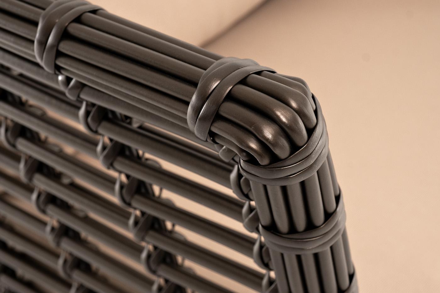 Кресло из искусственного ротанга «Валенсия» станет прекрасным дополнением к месту отдыха. Кресло оснащено каркасом из прочного алюминия, ручное круглое плетение является основным декоративным элементом мебели. Оно выполнено из искусственного ротанга в бронзовом цвете. В комплектацию входят мягкие подушки для комфортного расположения. Чехлы съёмные бежевого цвета из высококлассного полиэстера с плотностью 300гр/м2. Размеры кресла: 1000×850×800 мм.