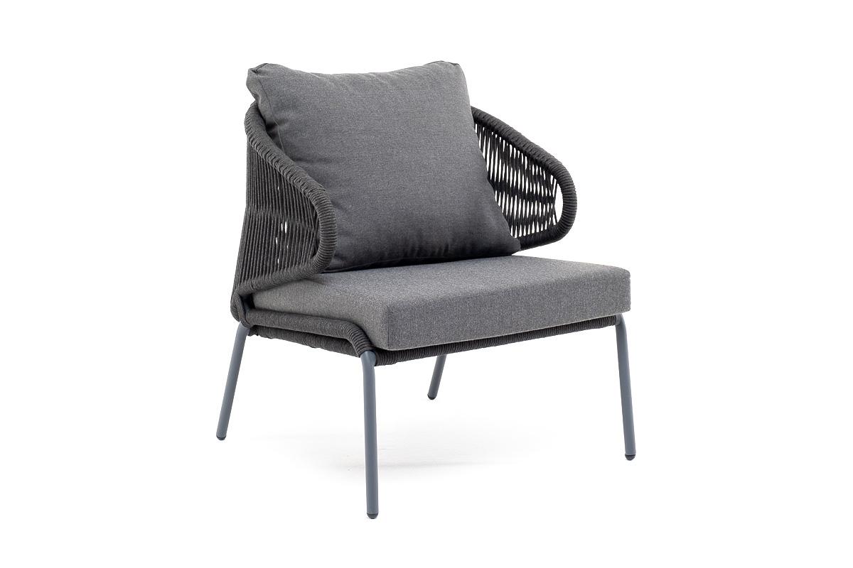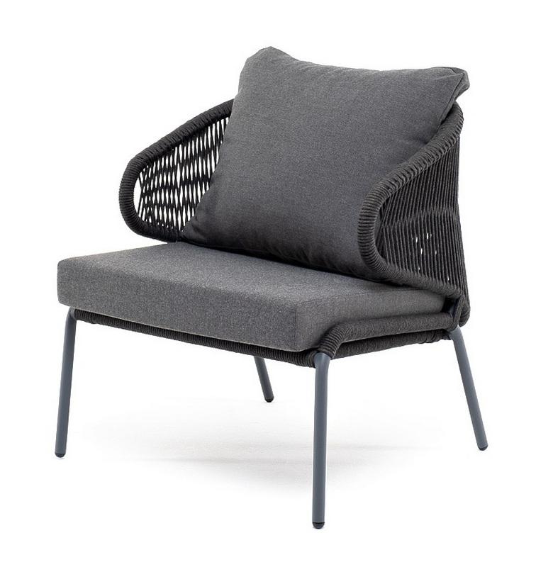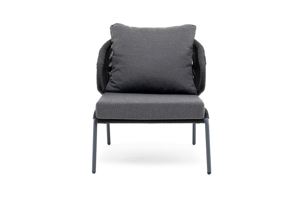 Кресло 4SIS "Милан" кресло плетеное из роупа, каркас алюминий темно-серый (RAL7024) муар, роуп темно-серый круглый, ткань темно-серая 027 арт. MIL-A-001 RAL7024 Mua D-grey(D-gray027)