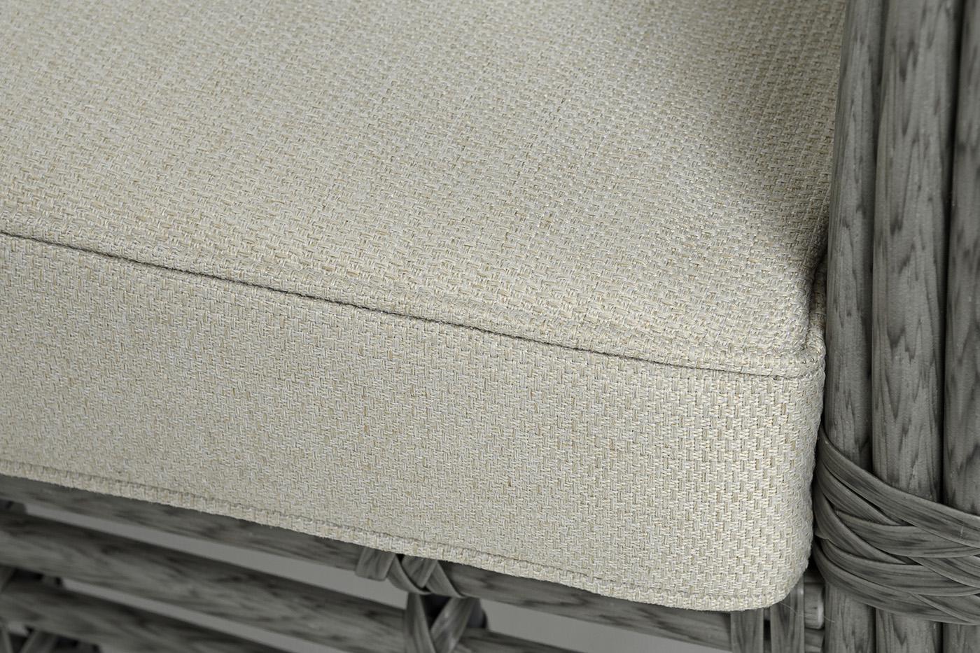 Кресло «Ницца» предназначено для комфортного времяпровождения в зоне отдыха с диванами и столиком из этой же серии. Каркас мебели сделан из прочного алюминия с высокими эксплуатационными качествами. Оплетен вручную с помощью круглого искусственного ротанга. Представлено в сером оттенке. Садовое кресло укомплектовано удобными бежевыми подушками. Полиэстер используется при пошиве тканевых изделий, плотность которого - 300гр/м2. Материал имеет обязательную влагоотталкивающую пропитку для усилени